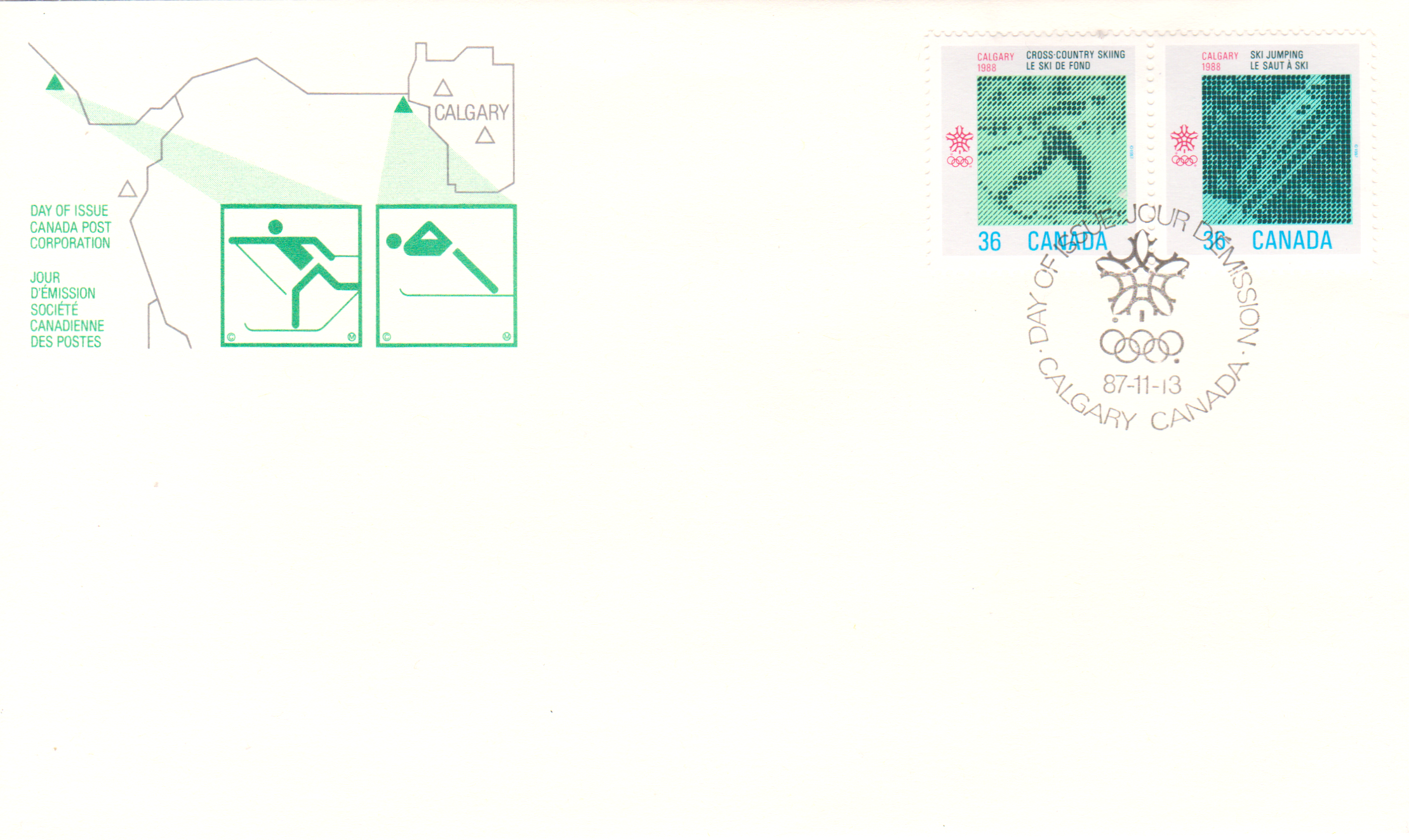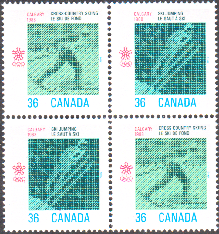 Am 13. November 1987 wurden in Kanada zwei Marken im Zusammendruck (MiNr 1066/1067) mit dem Motiven Skilanglauf und Skispringen verausgabt.
