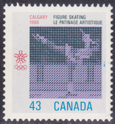 Am 15. Oktober 1986 erschienen zu den Olympische Winterspiele 1988 in Calgary zwei Marken (MiNr 1011 - 12) mit Darstellungen zum Eishockey und Biathlon. Die Marken wurden schachbrettartig zusammengedruckt.