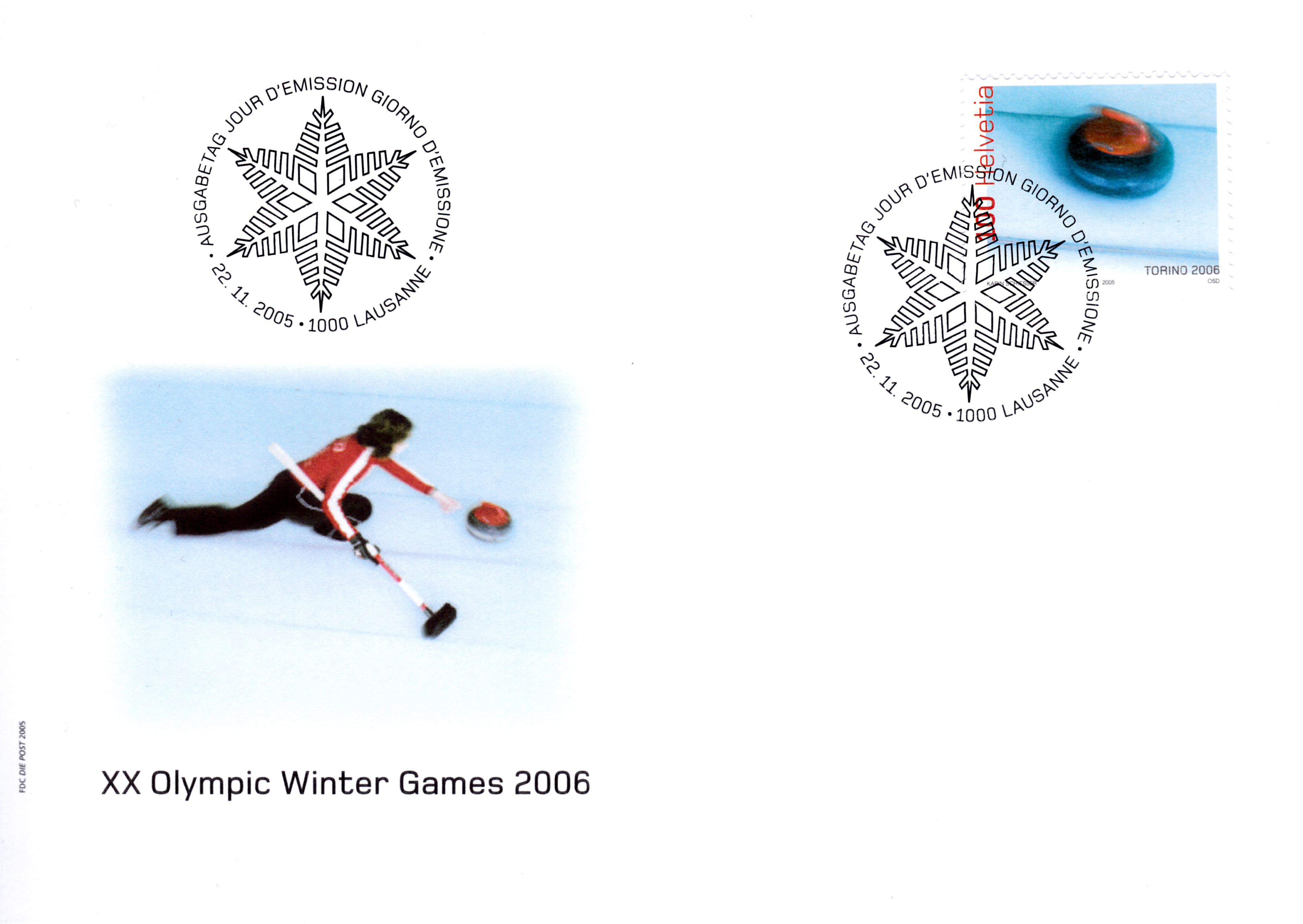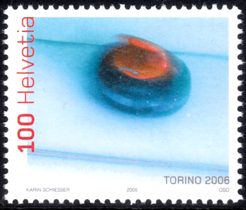Zu den Olympischen Winterspielen in Turin ist in der Schweiz diese Marke (MiNr 1949) zur Sportart "Curling" erschienen.