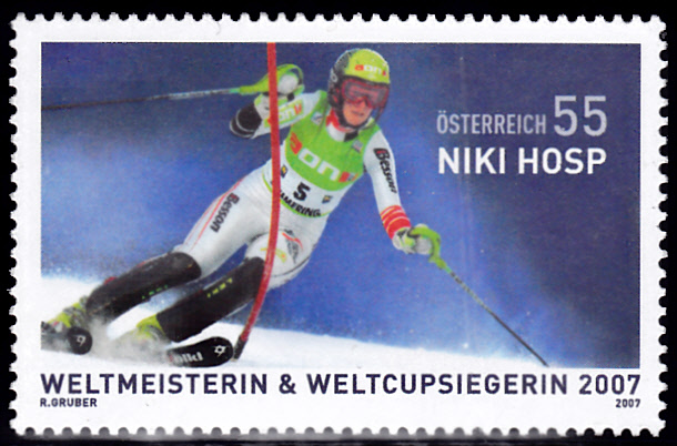 Inn Österreich wurde Nicole Hosp auf einer Marke (MiNr 2687) für ihren WM-Titel 2007 im Riesenslalom und den Gesamtweltcupsieg geehrt.