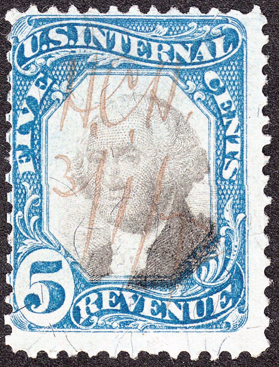 Foren-Übersicht Fragen und Diskussion Übersee Amerika Nordamerika Vereinigte Staaten von Amerika = USA USA Revenue Stamps Second Issue (1871) R107 - 5 Cents blau & schwarz