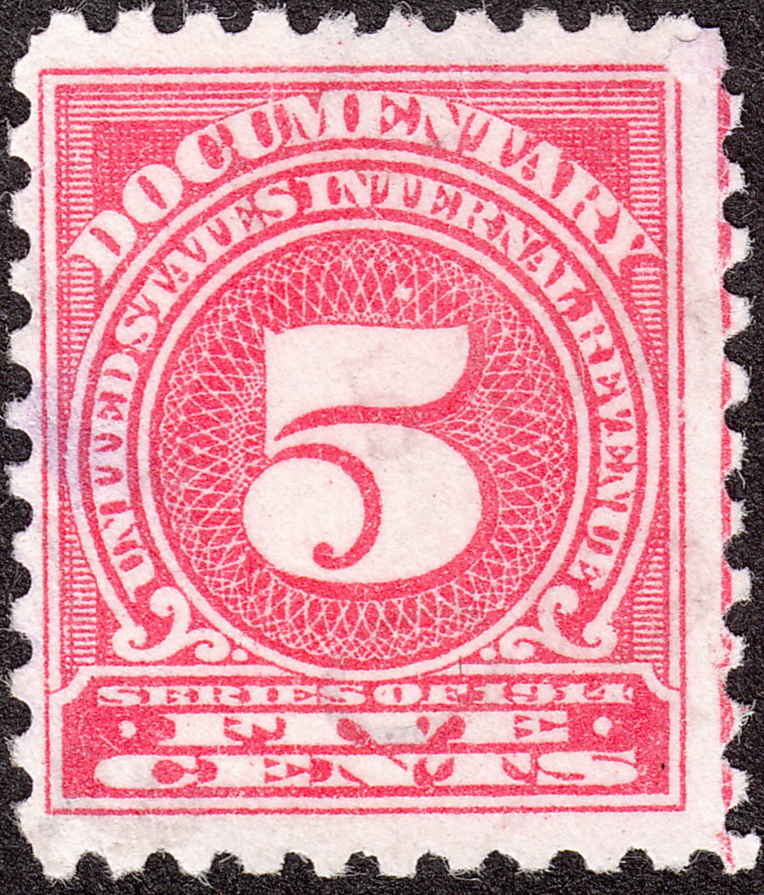 Foren-Übersicht Fragen und Diskussion Übersee Amerika Nordamerika Vereinigte Staaten von Amerika = USA USA Revenue Stamps "Series of 1914" (1914) R211 - 5 Cents rosa mit Wasserzeichen R191