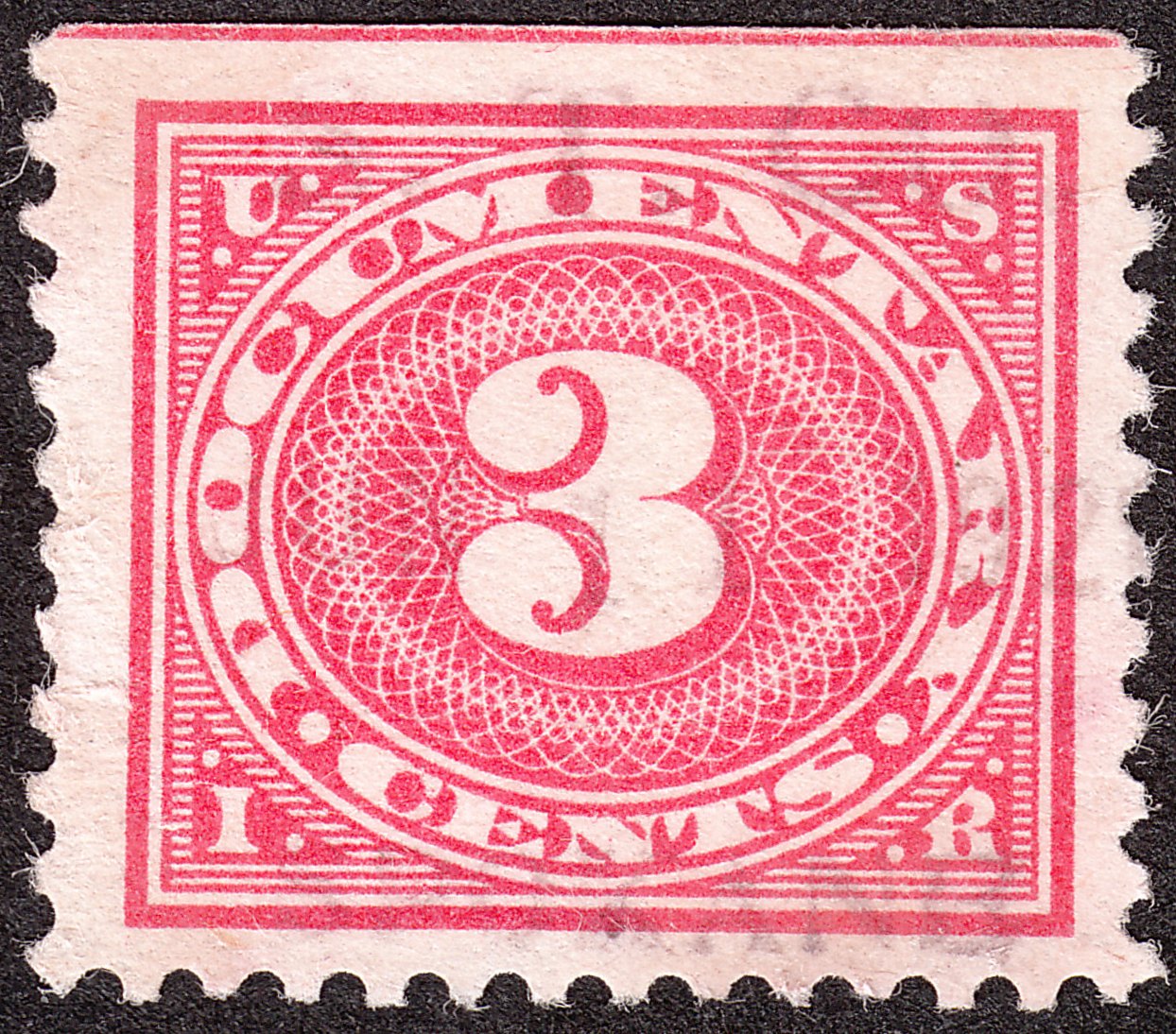 Die Wertstufe zu 3 Cents in karminrosa in der Zähnung 11 katalogisiert Scott als "R230", hier ein Exemplar in Type II: