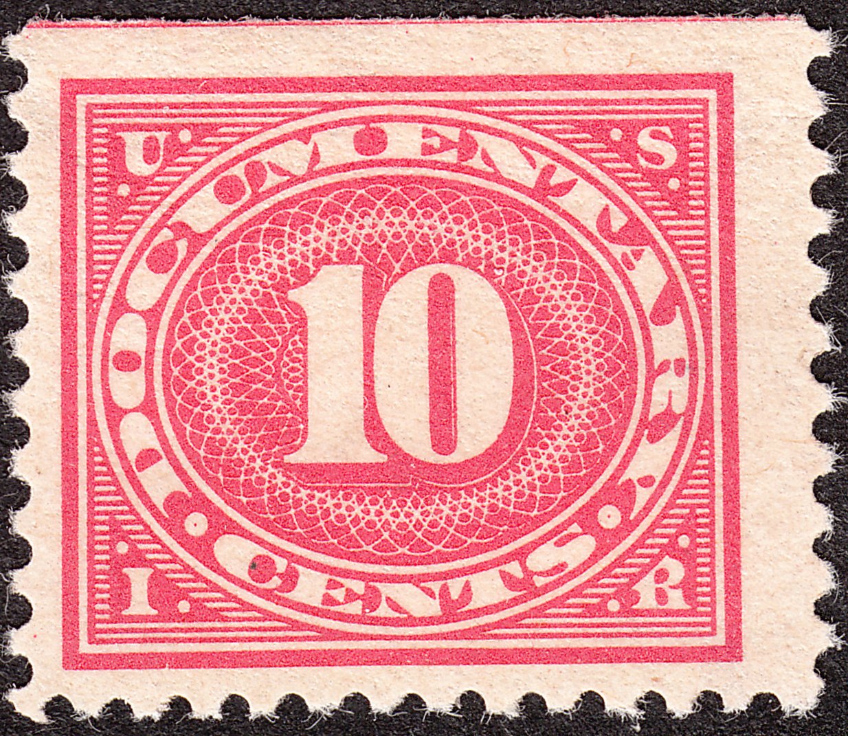 Die Wertstufe zu 10 Cents in karminrosa in der Zähnung 11 katalogisiert Scott als "R234", hier ein Exemplar in Type I: