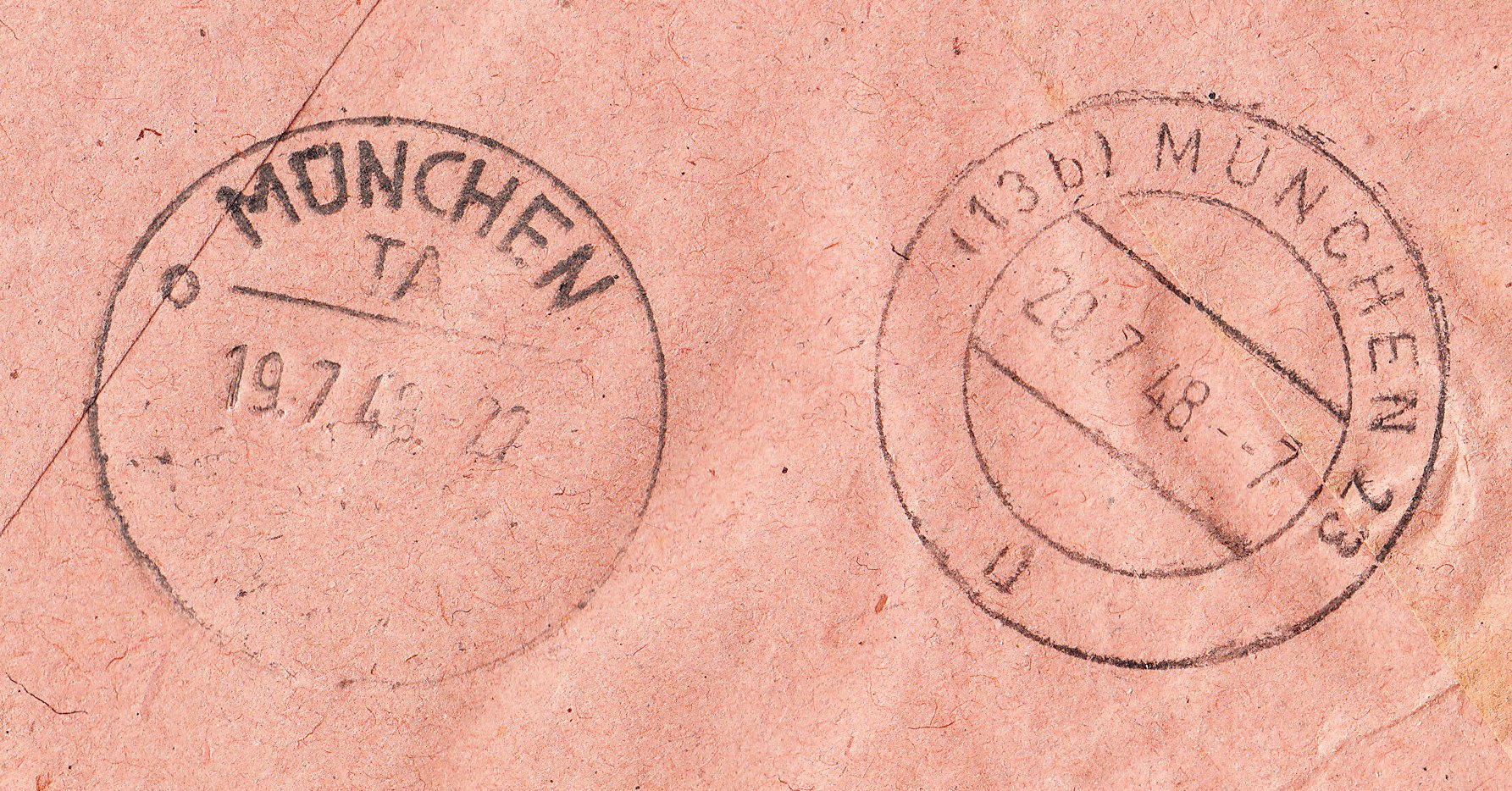 Dieser mit vier MiNr. 44 I sowie einer MiNr. 38 I nach München adressierte Brief wurde am 19.07.1948 in Rottach-Egern aufgegeben: