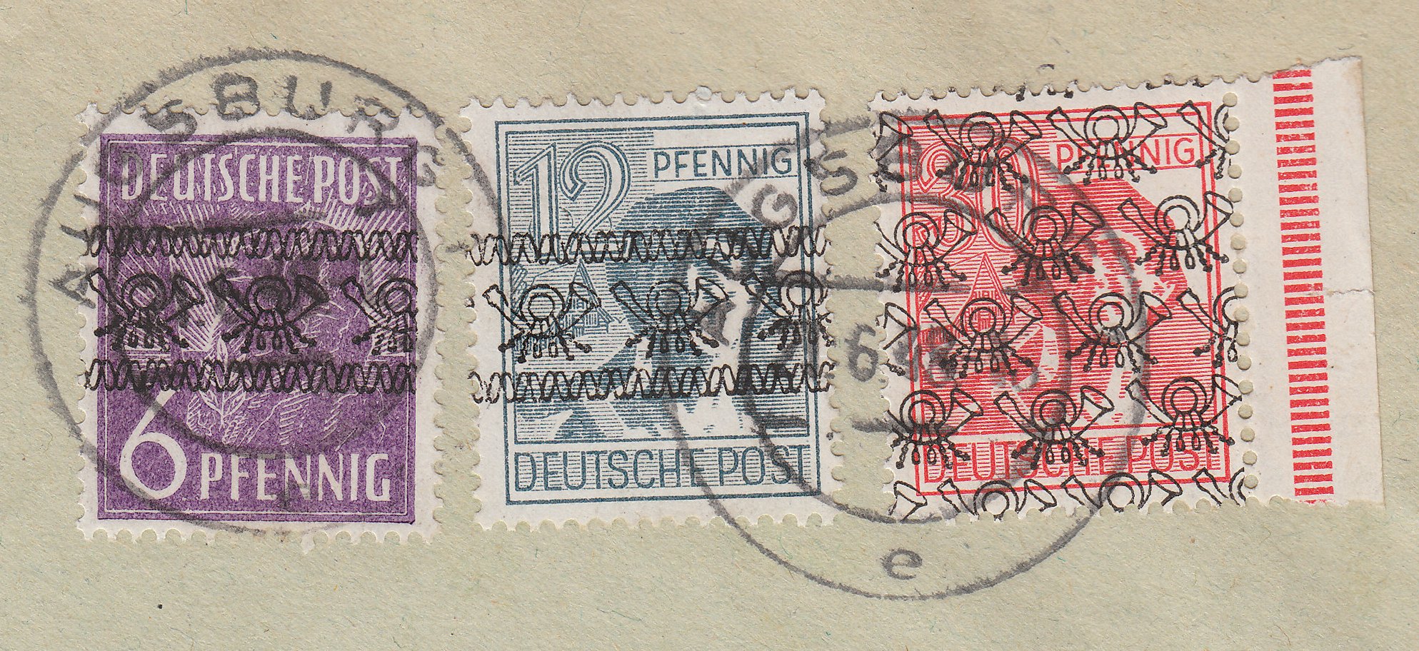 Foren-Übersicht Fragen und Diskussion Deutschland Deutschland ab 1945 Alliierte Besetzung (Amerikanische und Britische Zone) Posthörnchen Aufdrucke Bandaufdruck und Netzaufdruck