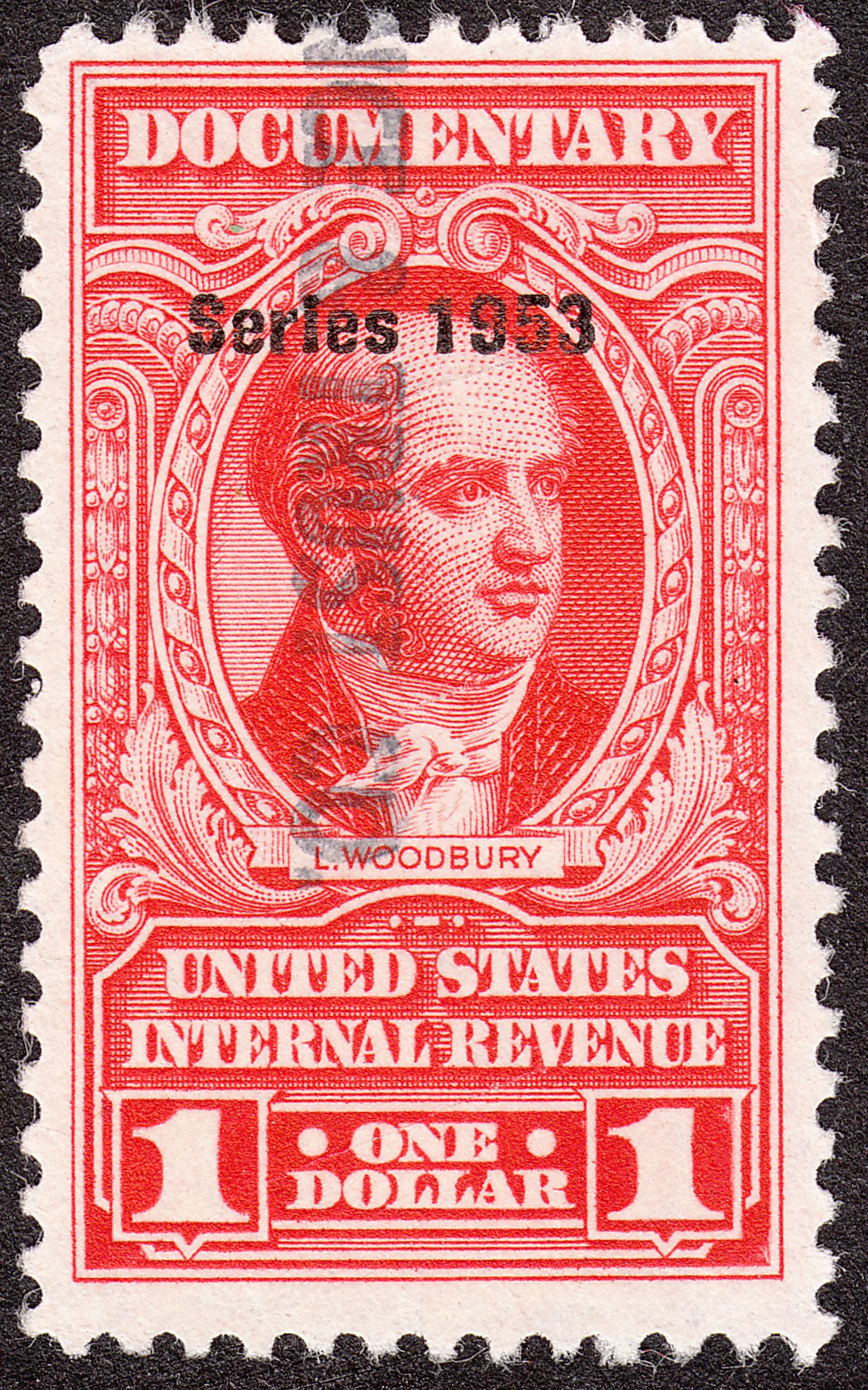 Foren-Übersicht Fragen und Diskussion Übersee Amerika Nordamerika Vereinigte Staaten von Amerika = USA USA Revenue Stamps Aufdruck in schwarz "Series 1953" R633 - 1 Dollar karmin