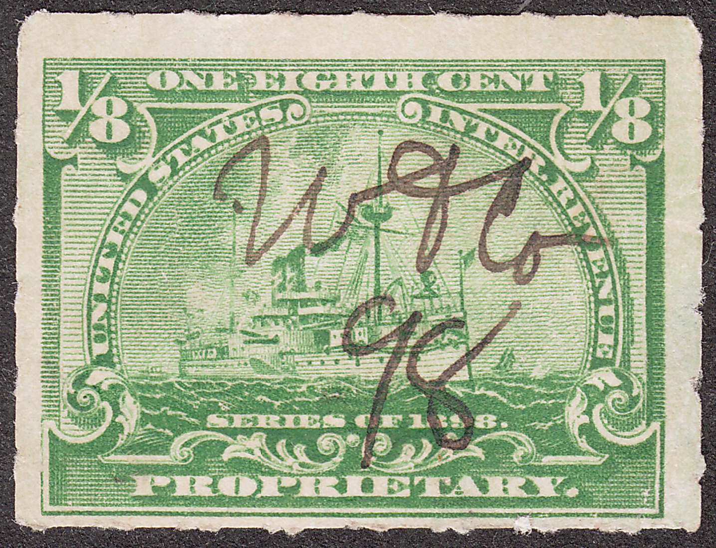 Foren-Übersicht Fragen und Diskussion Übersee Amerika Nordamerika Vereinigte Staaten von Amerika = USA USA Proprietary Stamps Ausgabe Battleship 1898 RB20 - 1/8 Cent gelbgrün