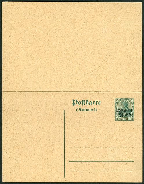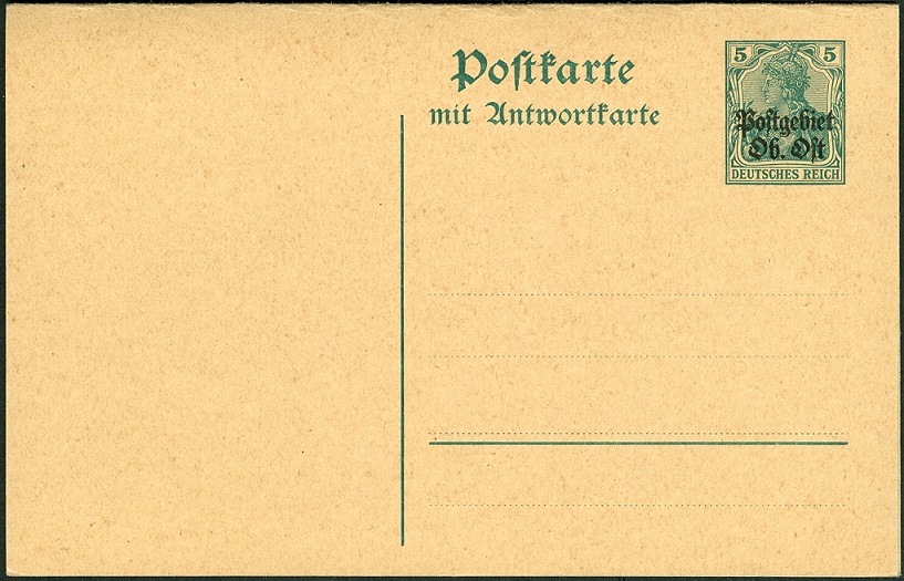 Am 15.Januar 1916 kamen erste Postkarten in Umlauf. Dazu wurden die Postkarten des Deutschen Reiches P 96 und P 104 mit einem schwarzen zweizeiligen Aufdruck versehen.