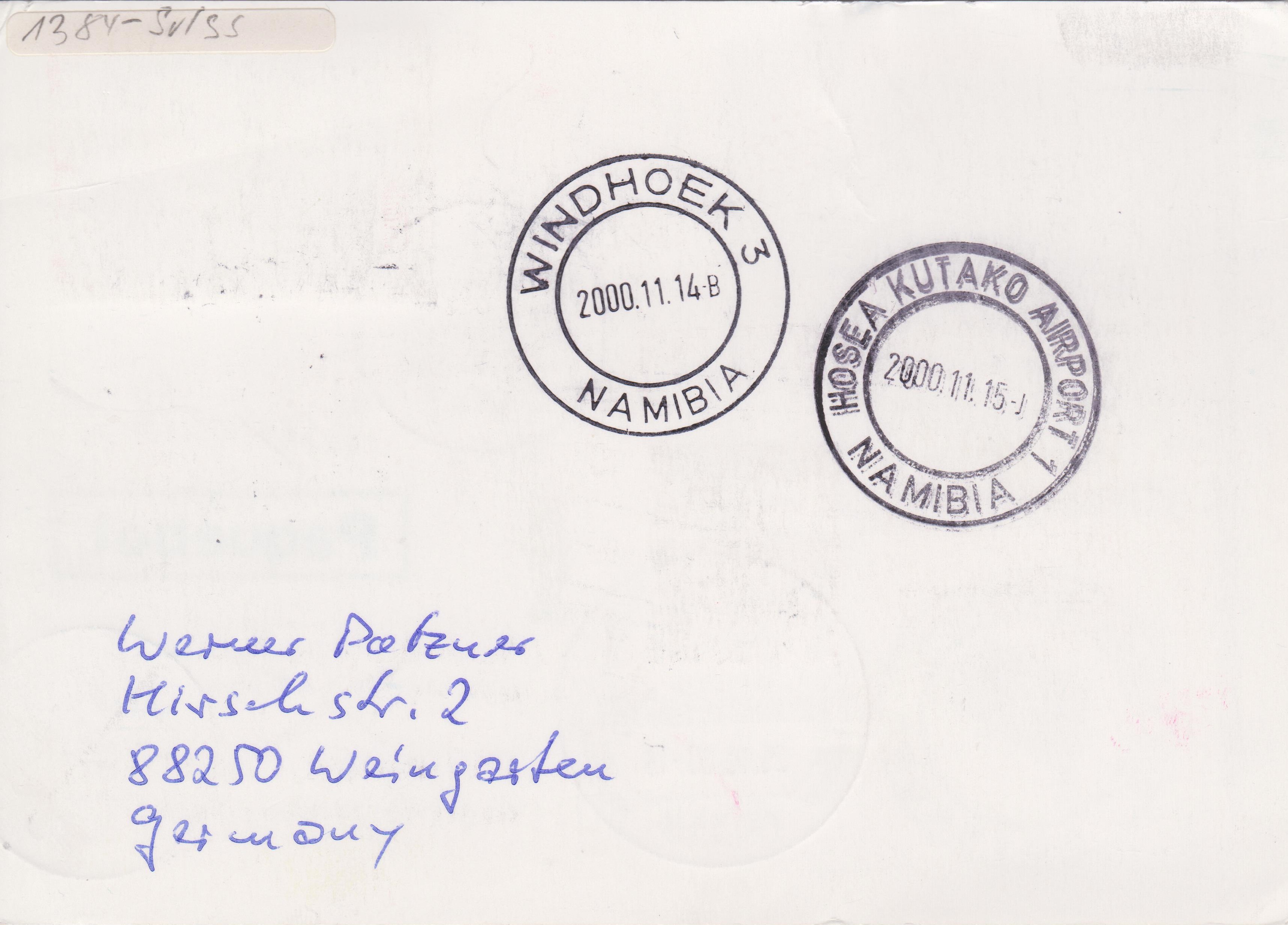 In Windhoek lagerte der Beleg der Adresse gemäß bei der Post bis zum 22.11.2000, worauf ein Tagesstempel hinweist.