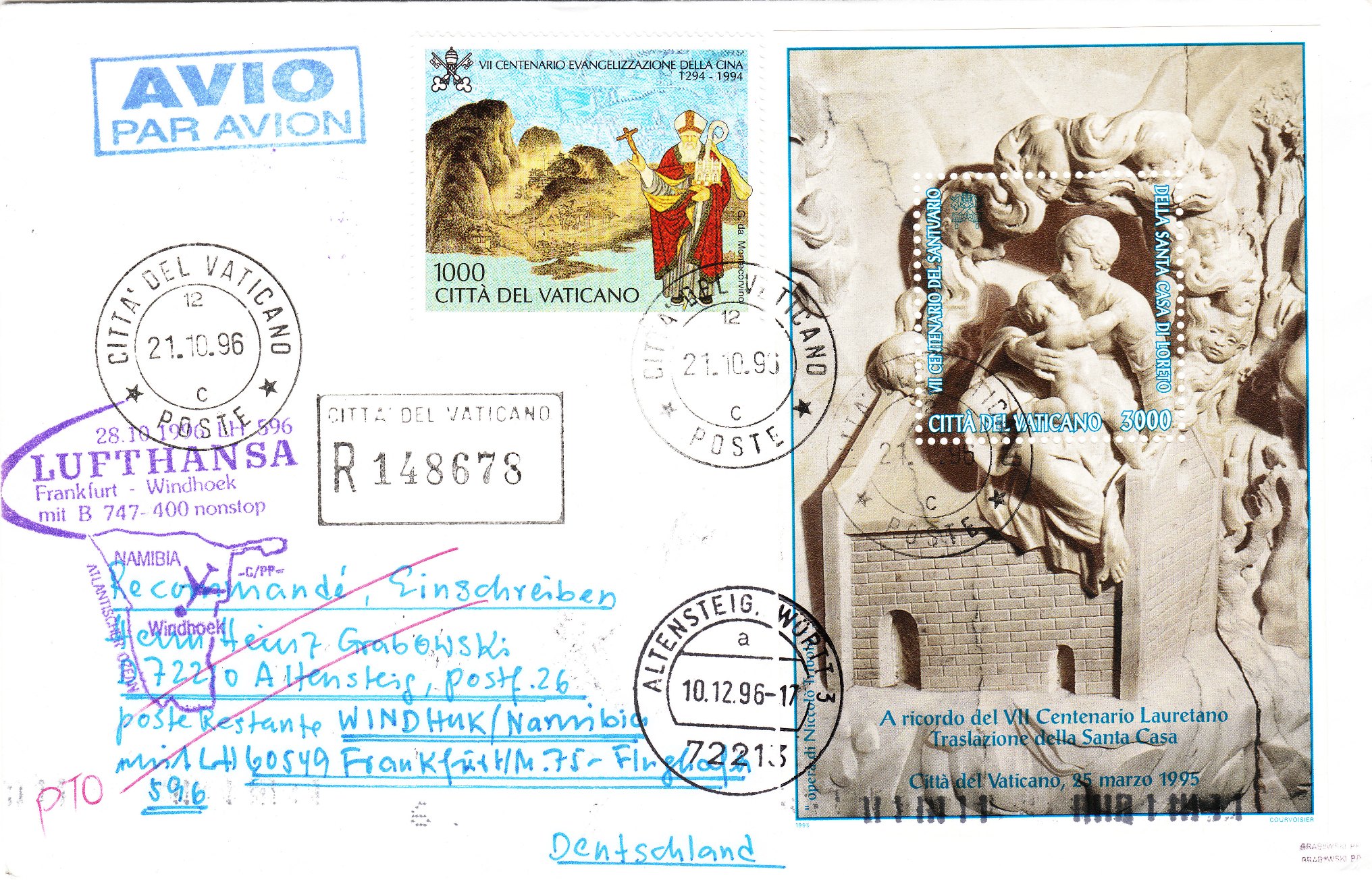 Dieser Beleg, eine Ansichtskarte des Schiffes MS BERLIN, wurde als Zuleitungspost an Bord des Kreuzfahrtschiffes MS BERLIN aufgegeben und trägt daher den Bordstempel des Schiffes und die deutsche Frankatur wurde mit dem Schiffspoststempel entwertet: