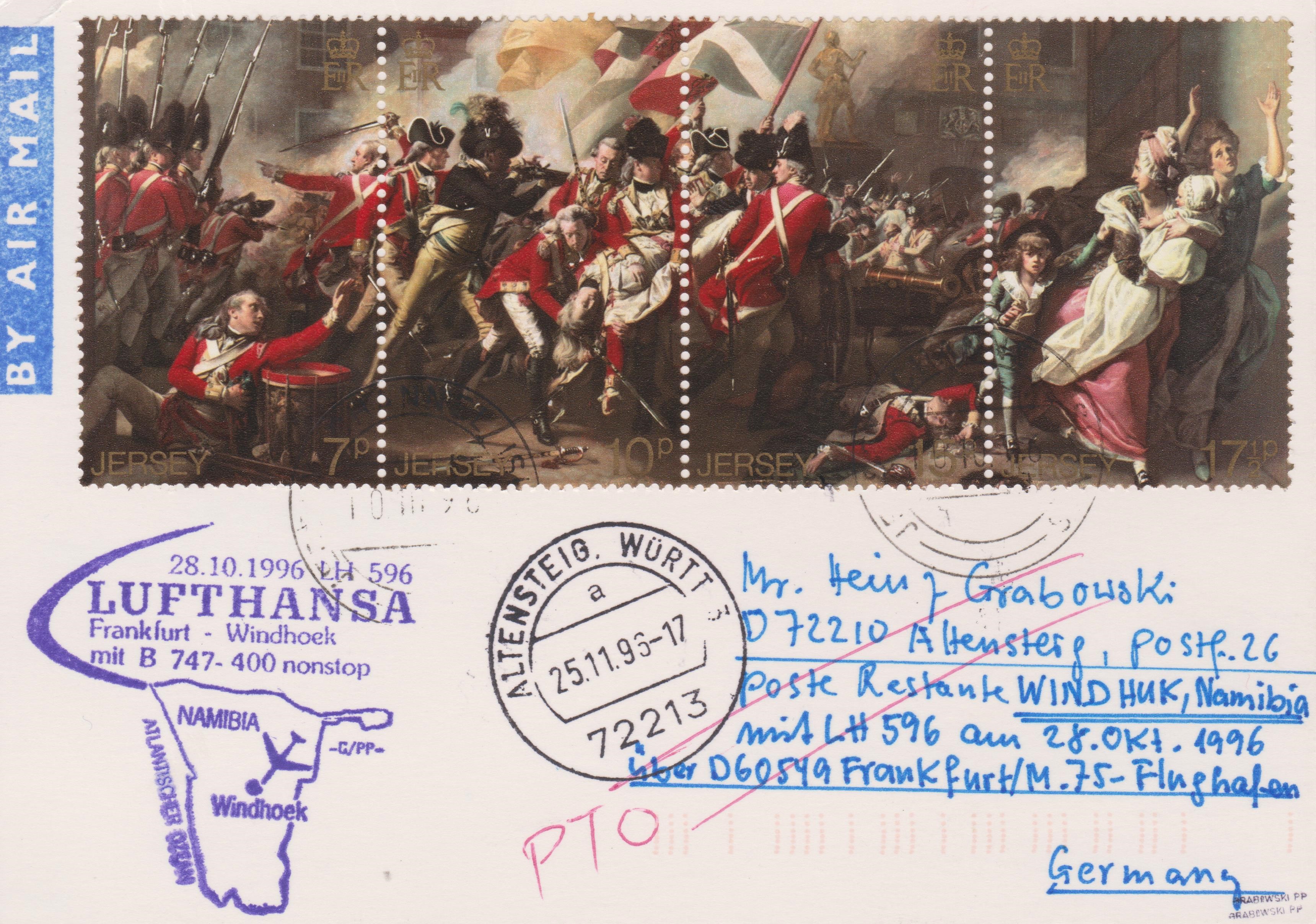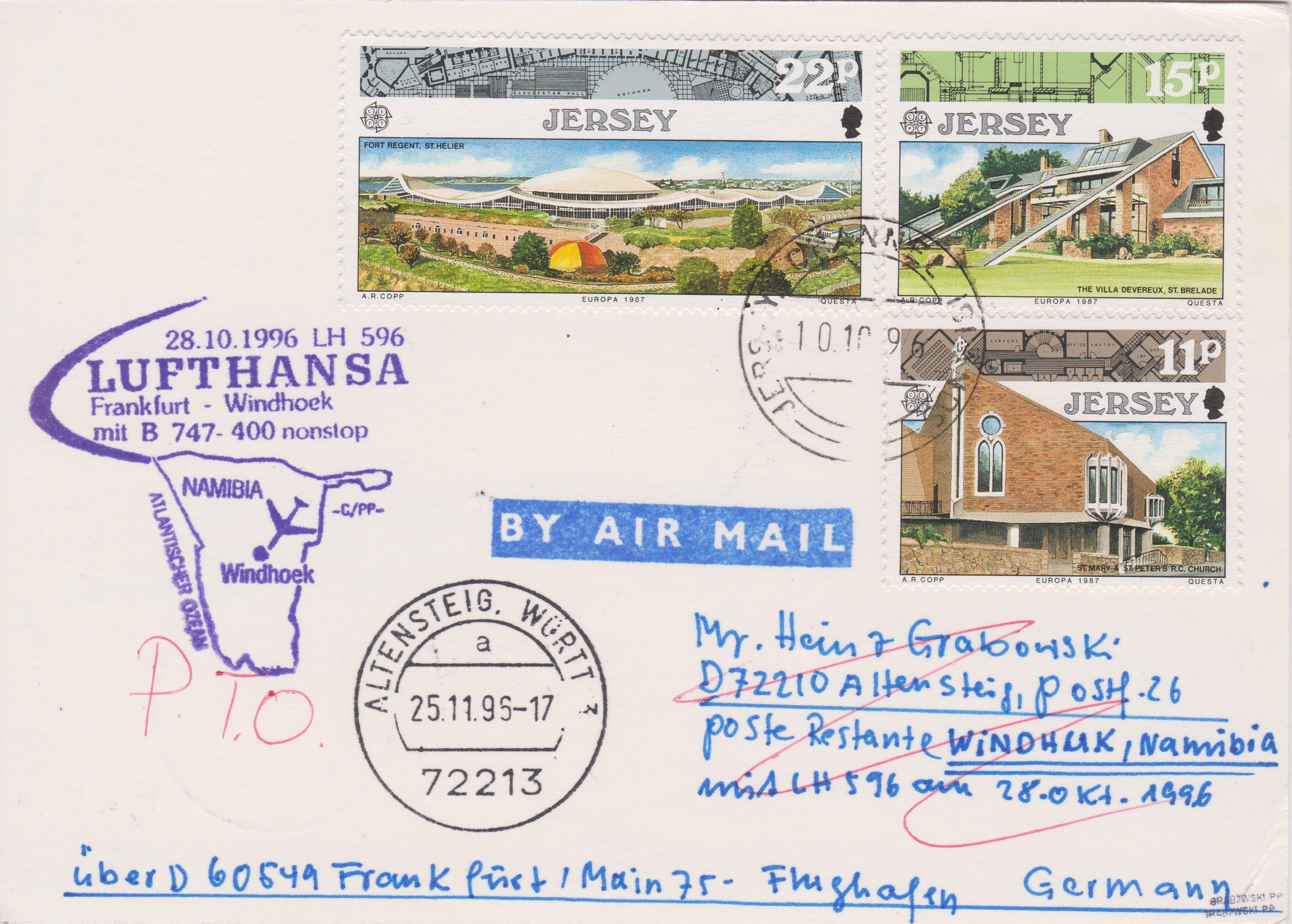 Zuleitungspost ab JERSEY, aufgegeben am 10.10.1996: