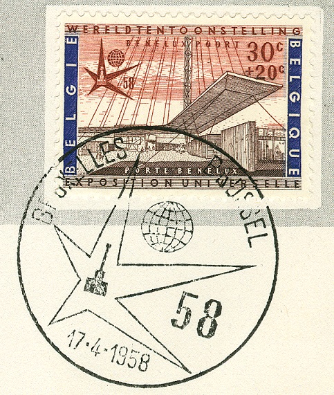 Die Brüsseler Weltausstellung des Jahres 1958 ist vielen bekannt durch das zum Symbol gewordene „Atomium“ (noch immer begehbar, Dauerausstellung). Sie fand vom 17. April bis 19. Oktober 1958 statt und ihr Emblem war „Der Stern“ von Lucien De Roeck. Weitere Informationen kann man problemlos nachlesen, zum Beispiel auch im Wikipedia-Artikel: http://de.wikipedia.org/wiki/Expo_58