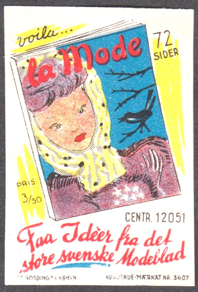 Diese Werbemarke (= Vignette) zeigt das Titelblatt einer Ausgabe der Zeitschrift "la Mode":