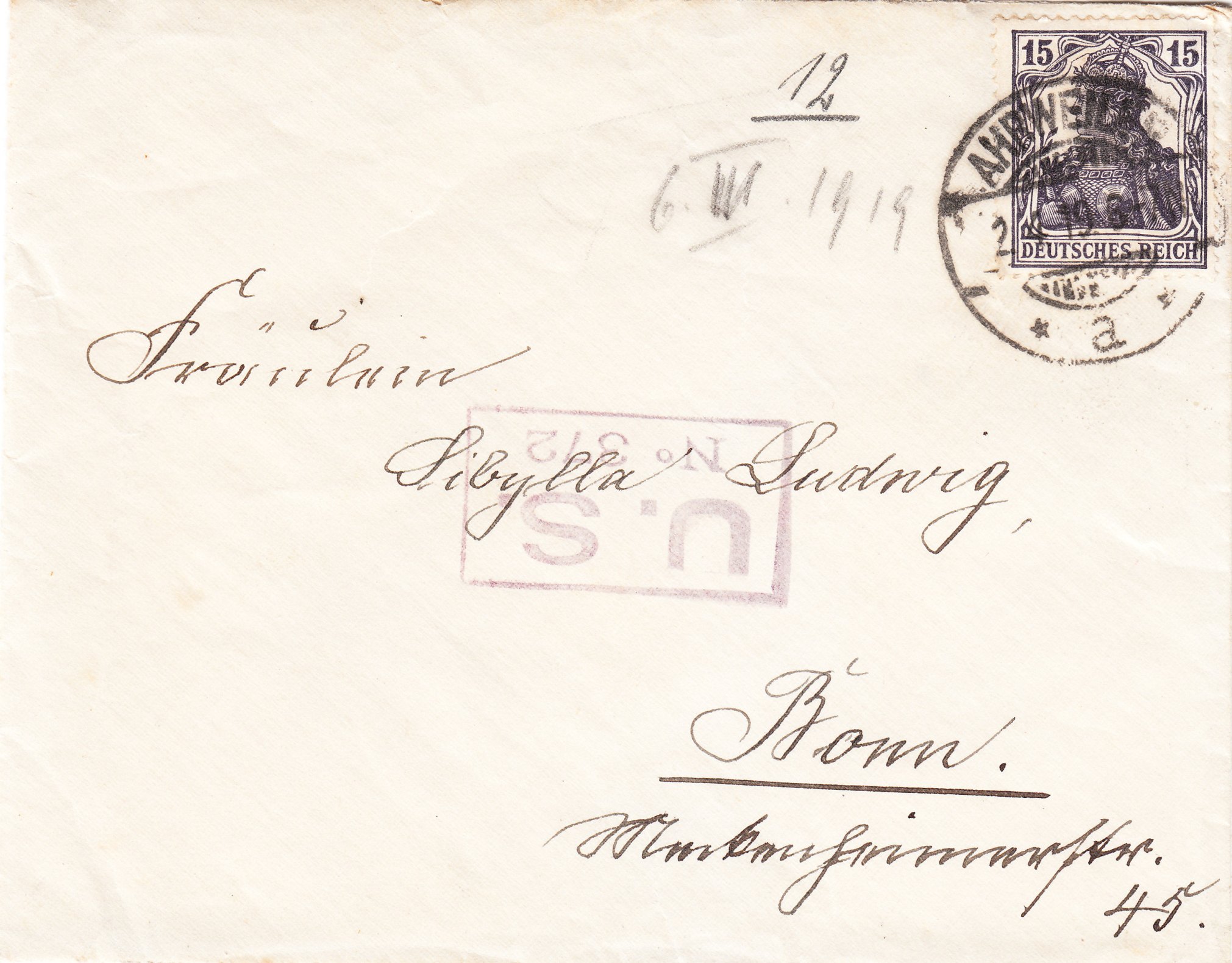 Die Frankatur wurde am 20.01.1919 per Tagesstempel AHRWEILER entwertet.