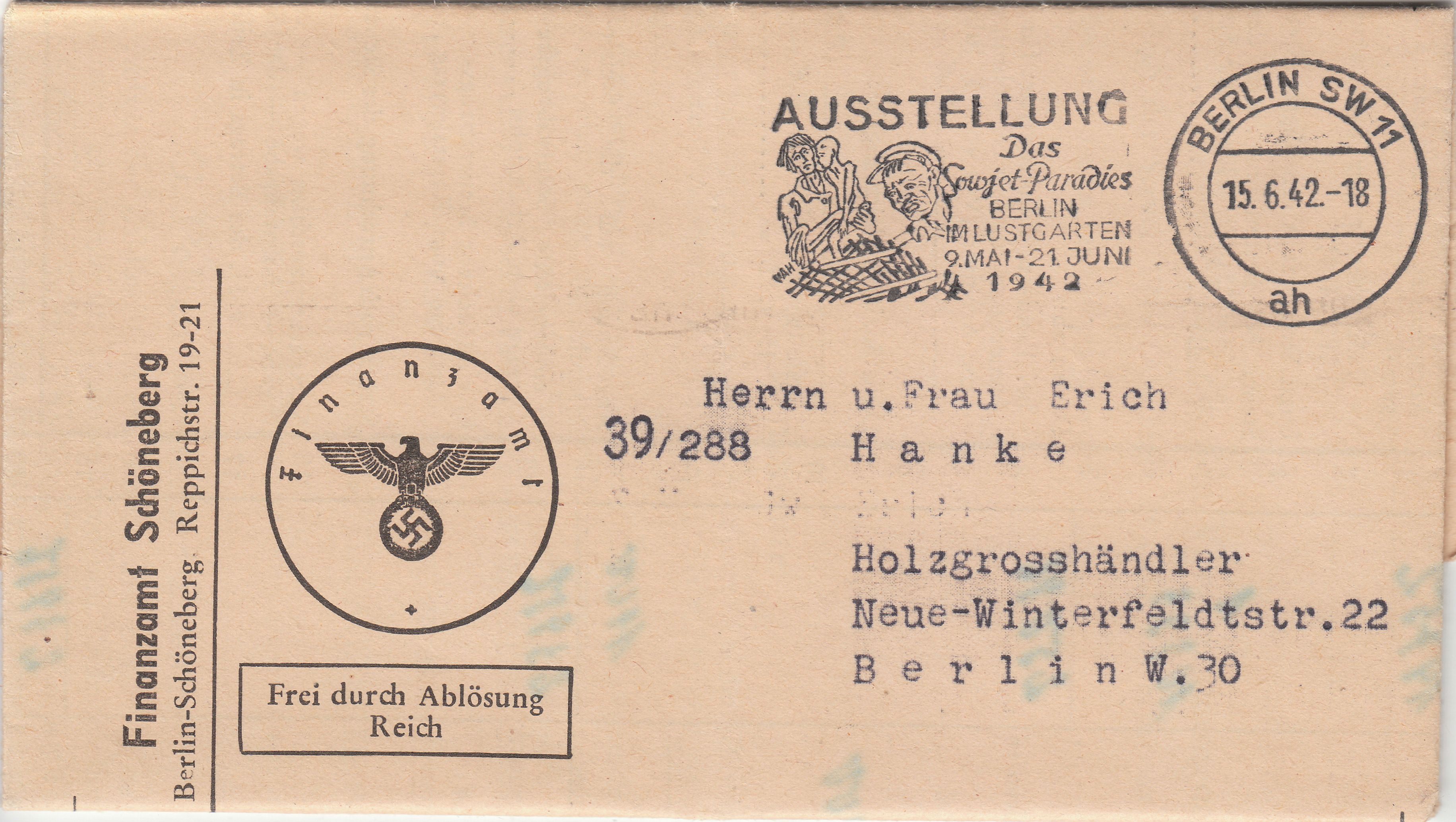 In BERLIN SW 11 wurde zu dieser Ausstellung ein entsprechender Werbeeinsatz im Maschinenstempel mit dem Kennbuchstaben "ah" verwendet: