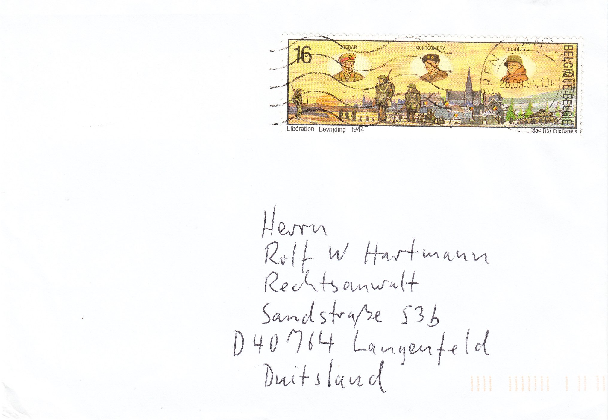 Frankreich und Belgien wurden tatsächlich bis zum September 1944 befreit, was dieses zum 50. Jahrestag dieses Ereignisses erschienene Postwertzeichen dokumentiert: