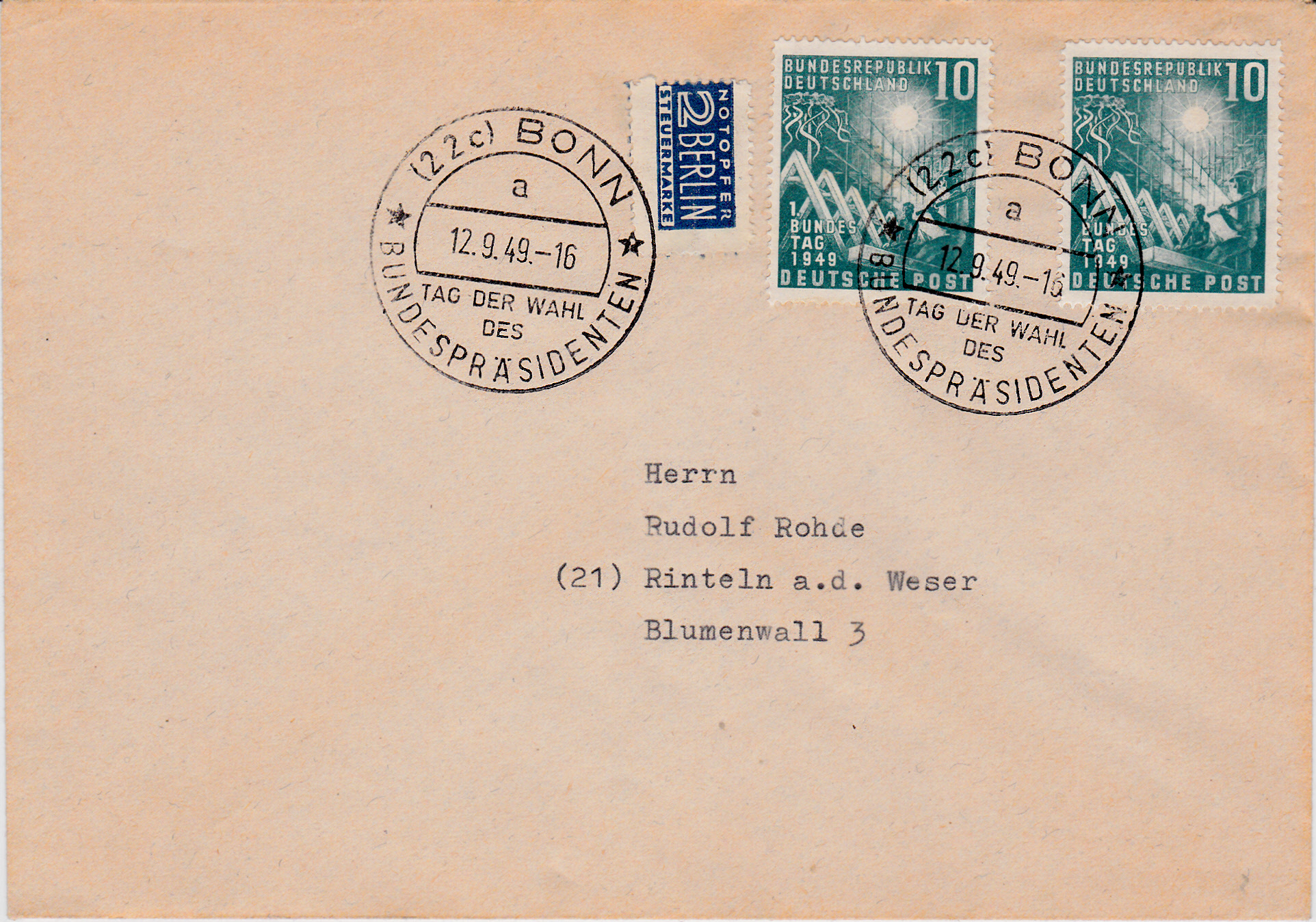 Ein Gegenkandidat bei dieser Wahl war der SPD-Vorsitzende Kurt Schumacher (geb. 13. Oktober 1895 in Culm, Westpreußen; gest. 20. August 1952 in Bonn). Er erhielt im ersten Wahlgang 311 Stimmen und im zweiten Wahlgang 312 Stimmen (38,8%).