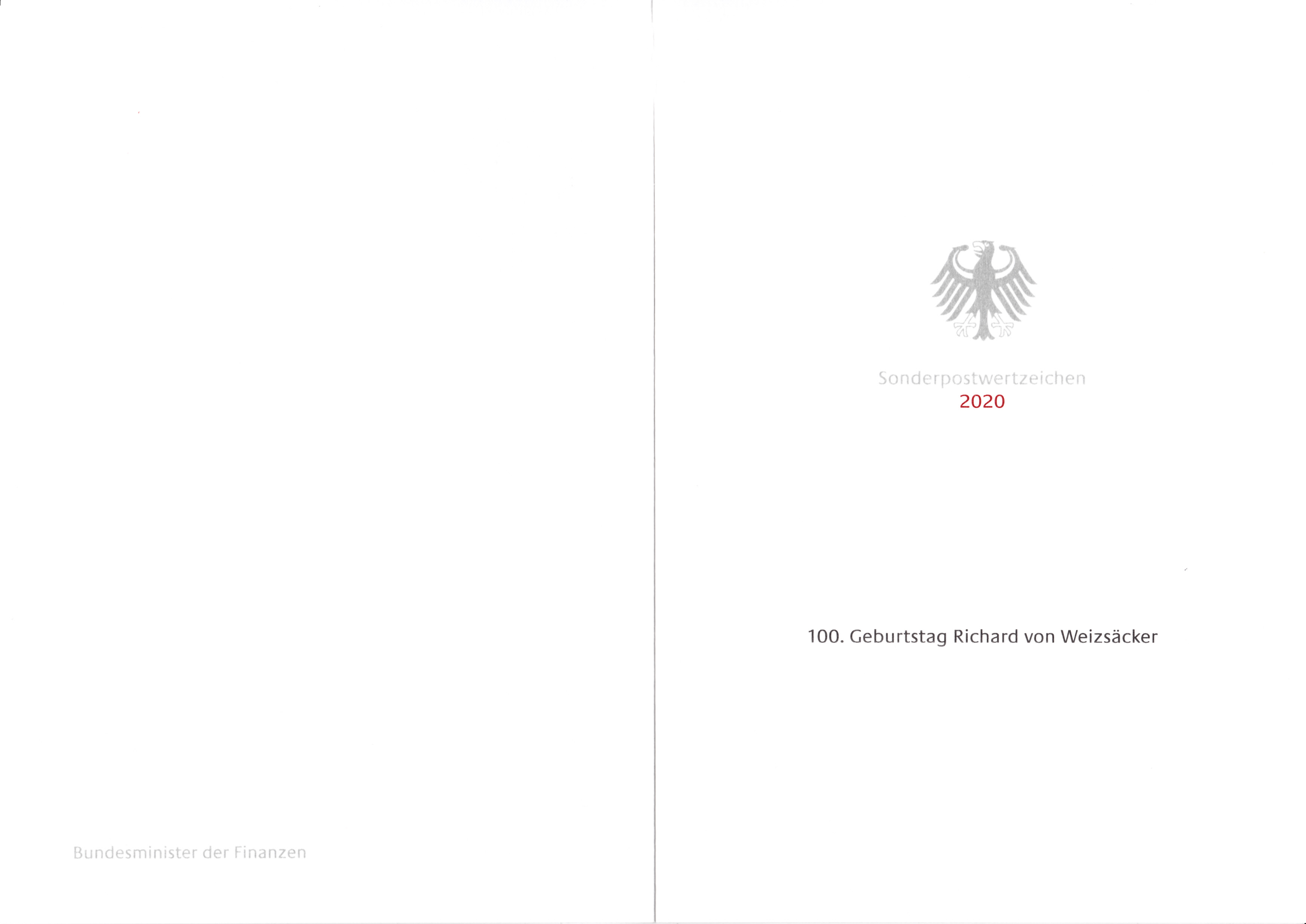 Ministerkarte des Finanzministers mit zwei Marken zum 100. Geburtstag von Richard von Weizsäcker und den beiden Ersttagsonderstempel Bonn und Berlin.
