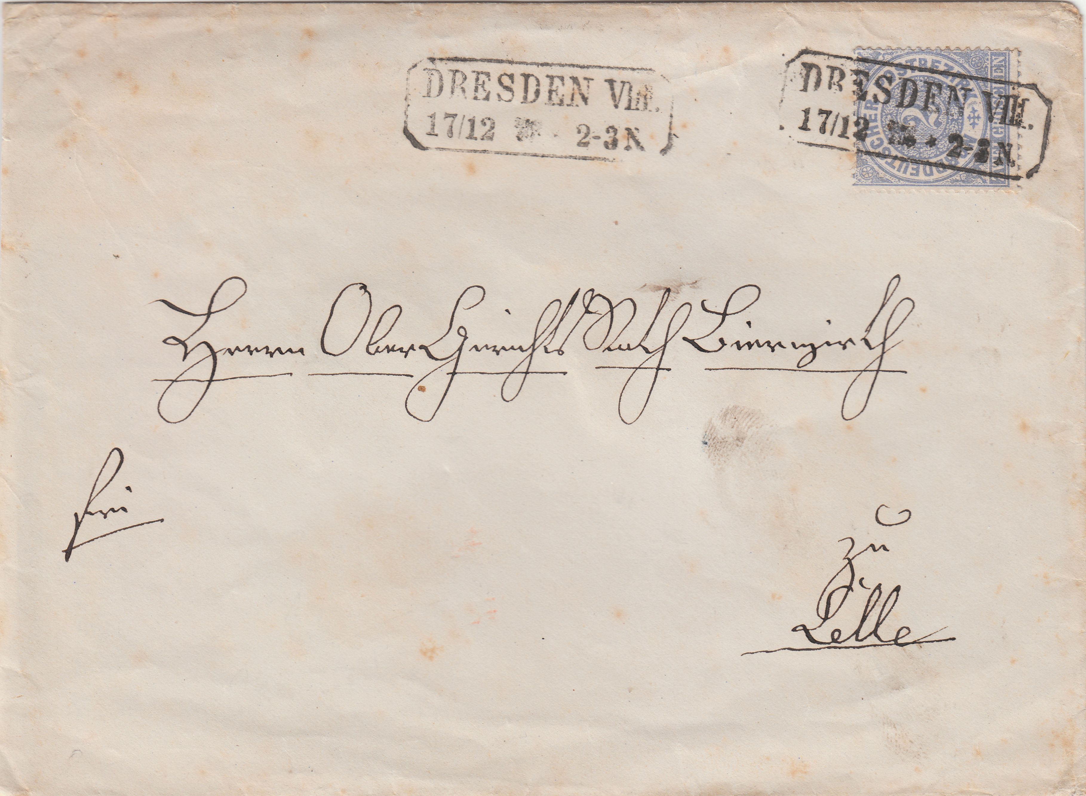 Hier eine Einzelfrankatur der MiNr. 17 am 17.12.1871 auf Brief von Dresden nach Celle: