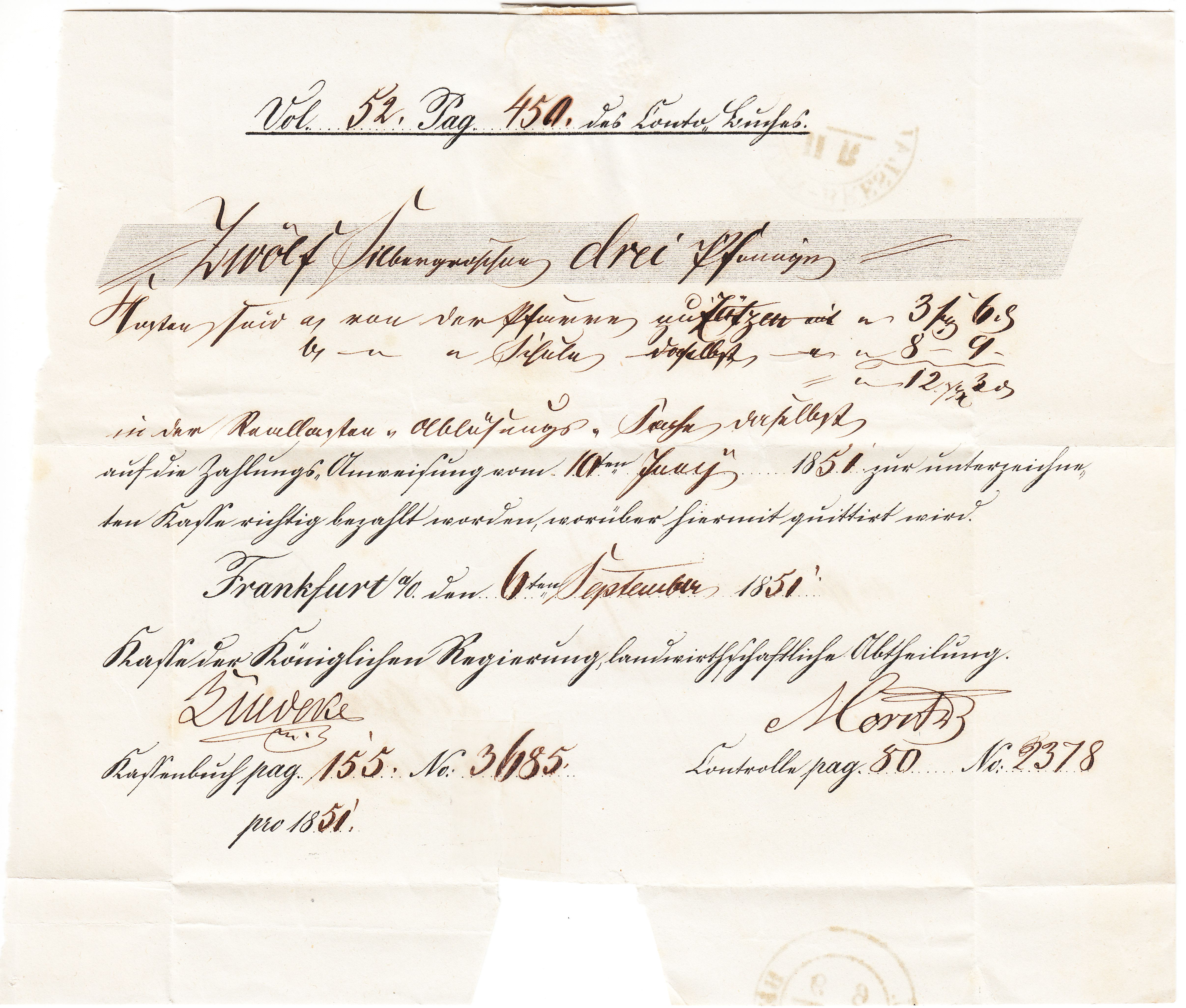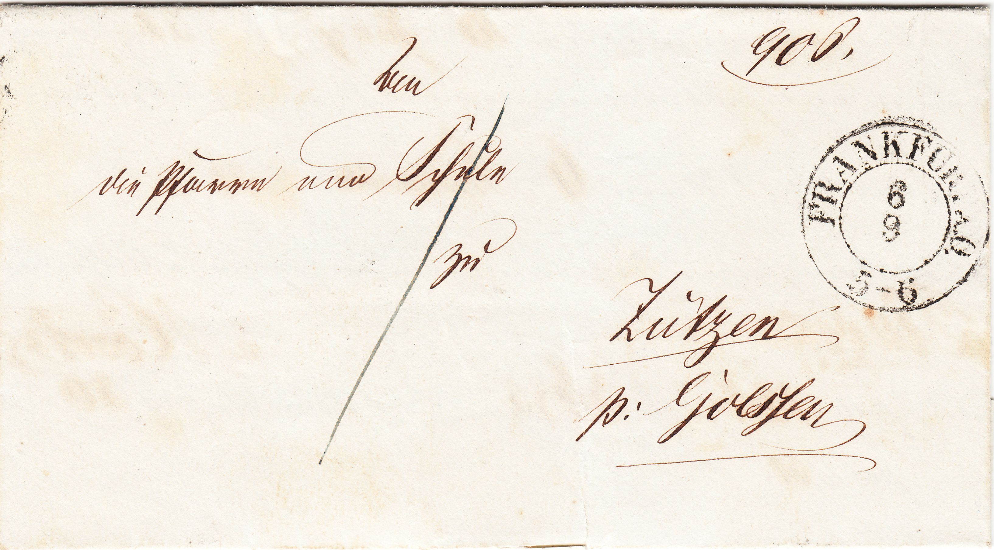 Dieser Brief wurde am 06.09.1851 in FRANKFURT A.O. aufgegeben: