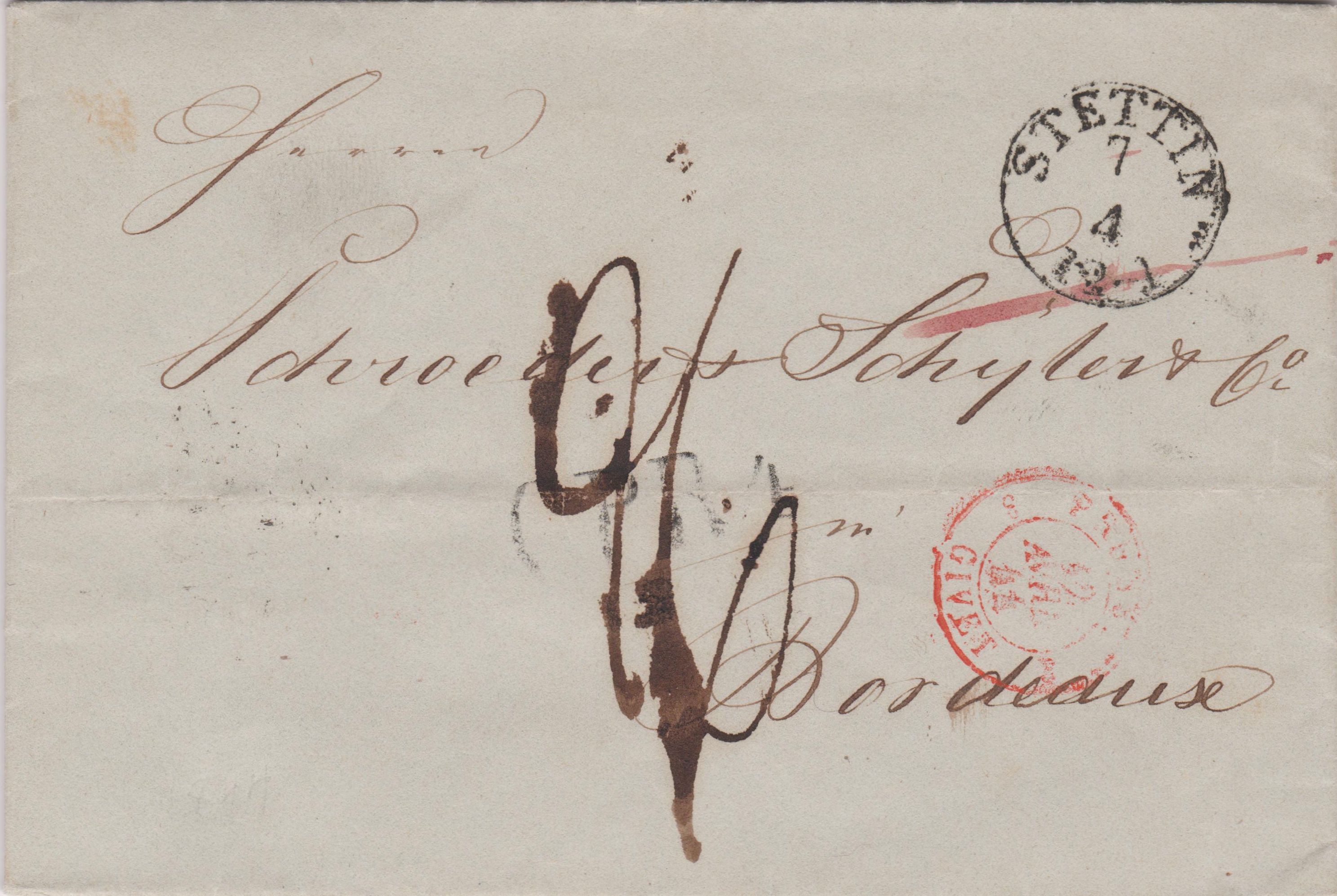 Brief nach Bordeaux, aufgegeben in STETTIN am 07.04.1844: