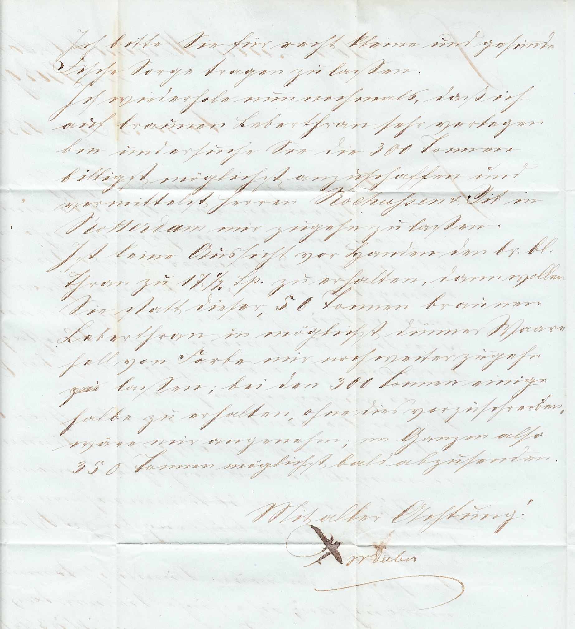 Der Brief kam am 26.07.1855 beim königlich preußischen Ober-Postamt in Hamburg an, was ein rückseitig abgeschlagener Zweikreisstempel dokumentiert. Von dort wurde der Beleg am 27.07.1855 an das königlich dänische Ober-Postamt in Hamburg weitergeleitet, was ein ebenfalls rückseitig abgeschlagener Zweikreisstempel dokumentiert.