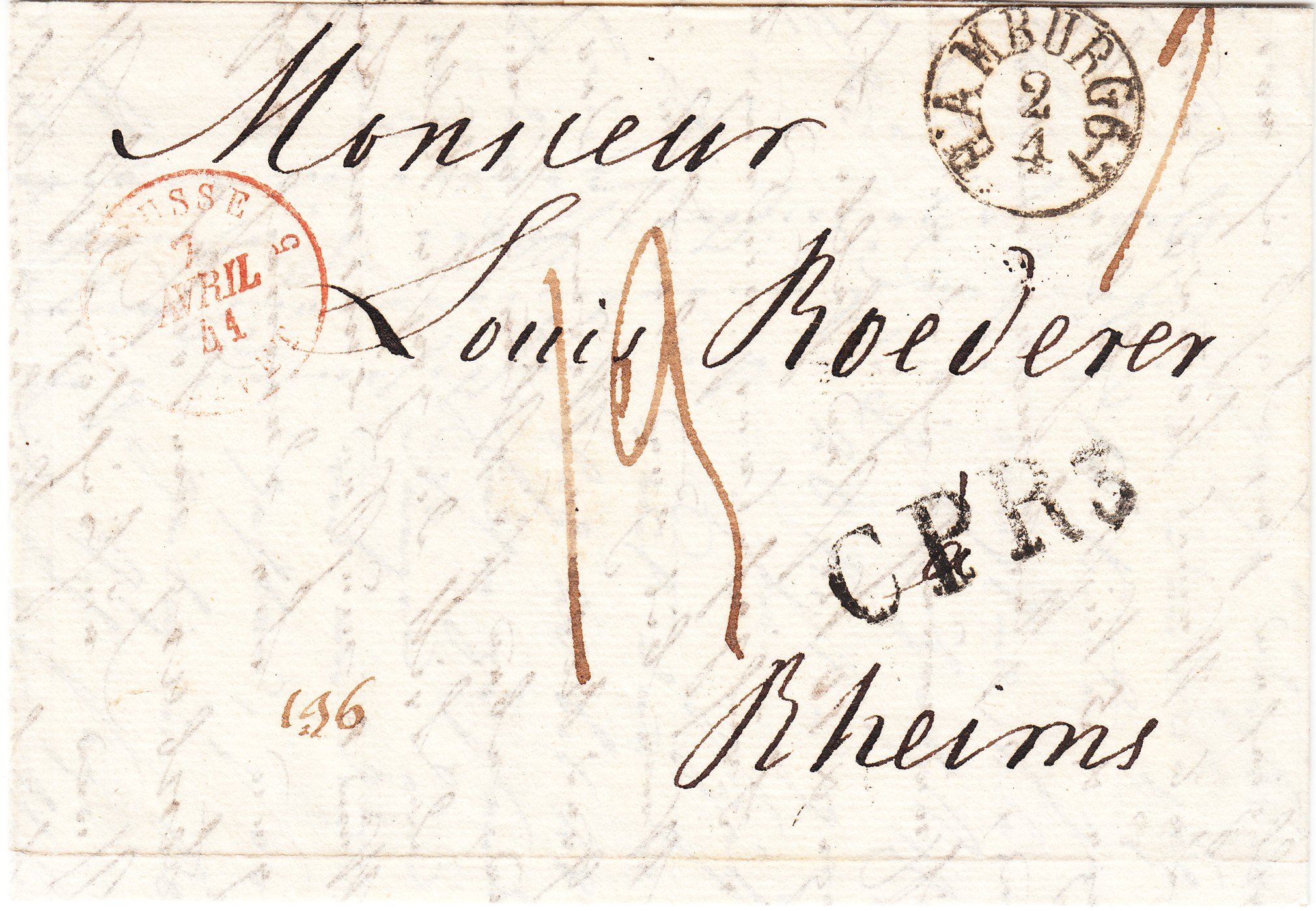 Den Anfang macht dieser am 03.05.1836 in BERLIN aufgegebene Brief nach Reims, in der Adresse "Rheims" geschrieben: