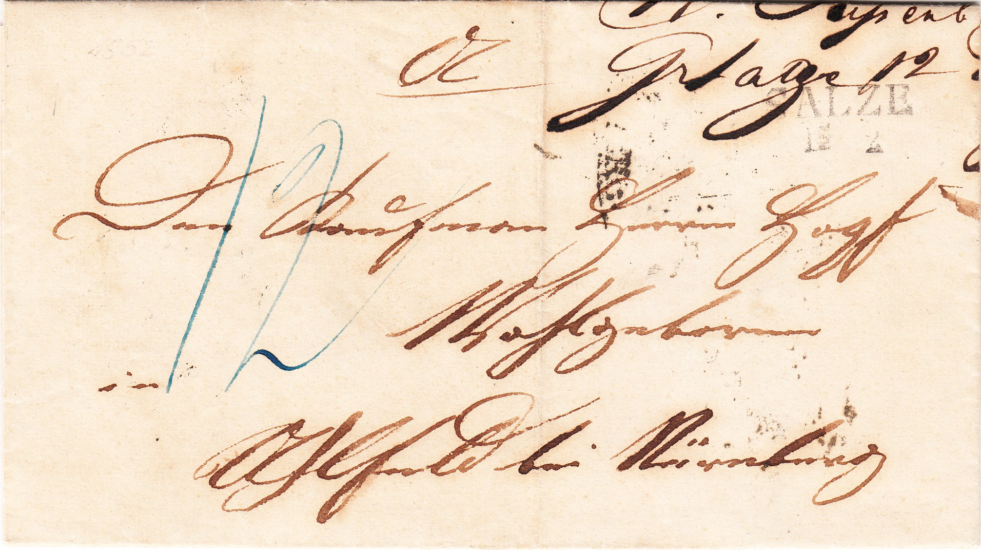 Foren-Übersicht Fragen und Diskussion Deutschland Deutschland bis 1945 Altdeutschland Preußen Preußen - Markenlose Briefe zur Markenzeit Brief von SALZE nach Uhlfeld bei Nürnberg