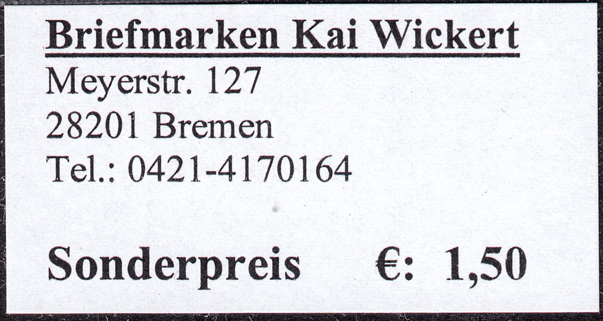 Und hier kommt die dritte Marke aus dieser Quelle, ebenfalls heute für 1,50 Euro erstanden: