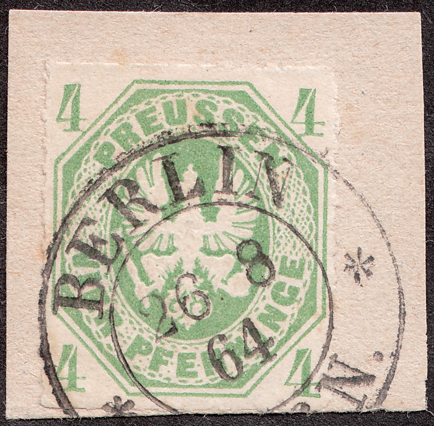 Es handelt sich um eine MiNr. 14 auf einem Briefstück, entwertet per Zweikreisstempel "BERLIN 26 8 64".