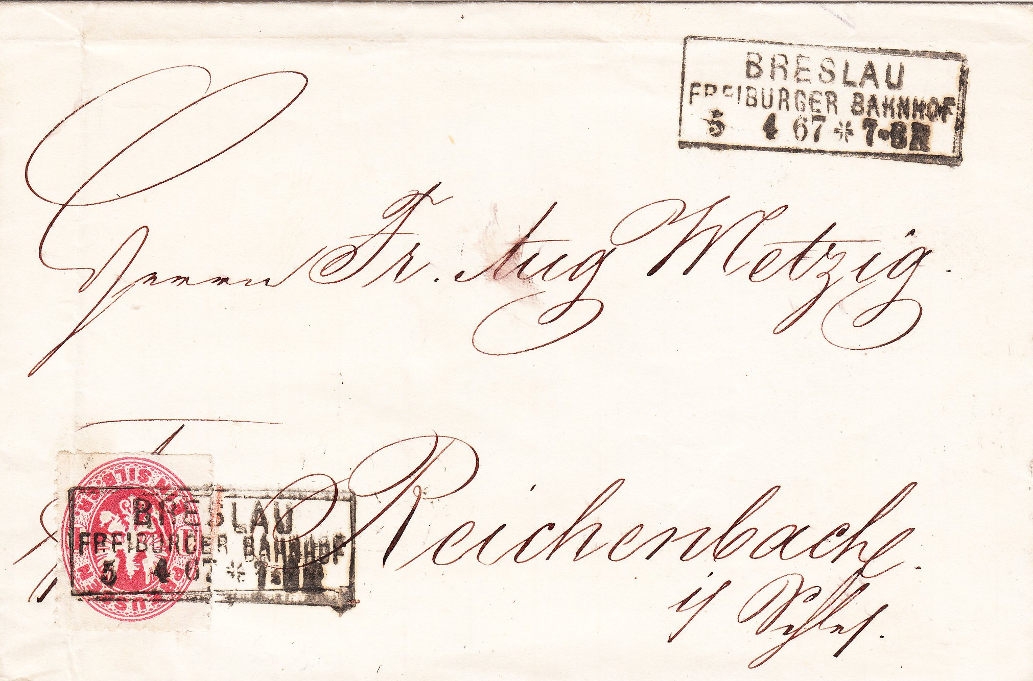 Es bedeutete somit wie bei diesem Beispiel zu sehen doppelte Arbeit, daß jeder Brief zweimal gestempelt werden mußte, zum ersten die Frankatur mit dem Ringstempel und zum zweiten der Beleg mit dem Ortsstempel.