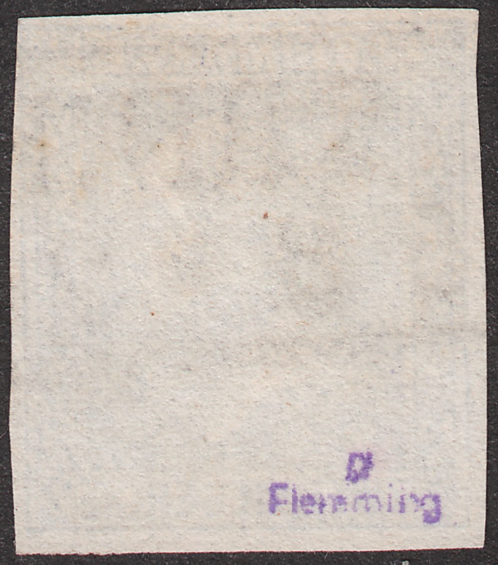 Dieses Exemplar wurde angeboten als "Expertengeprüft: BPP-Signatur", trägt rückseitig jedoch keinen Prüferstempel "BPP", sondern einen Stempel "Flemming" sowie "a".