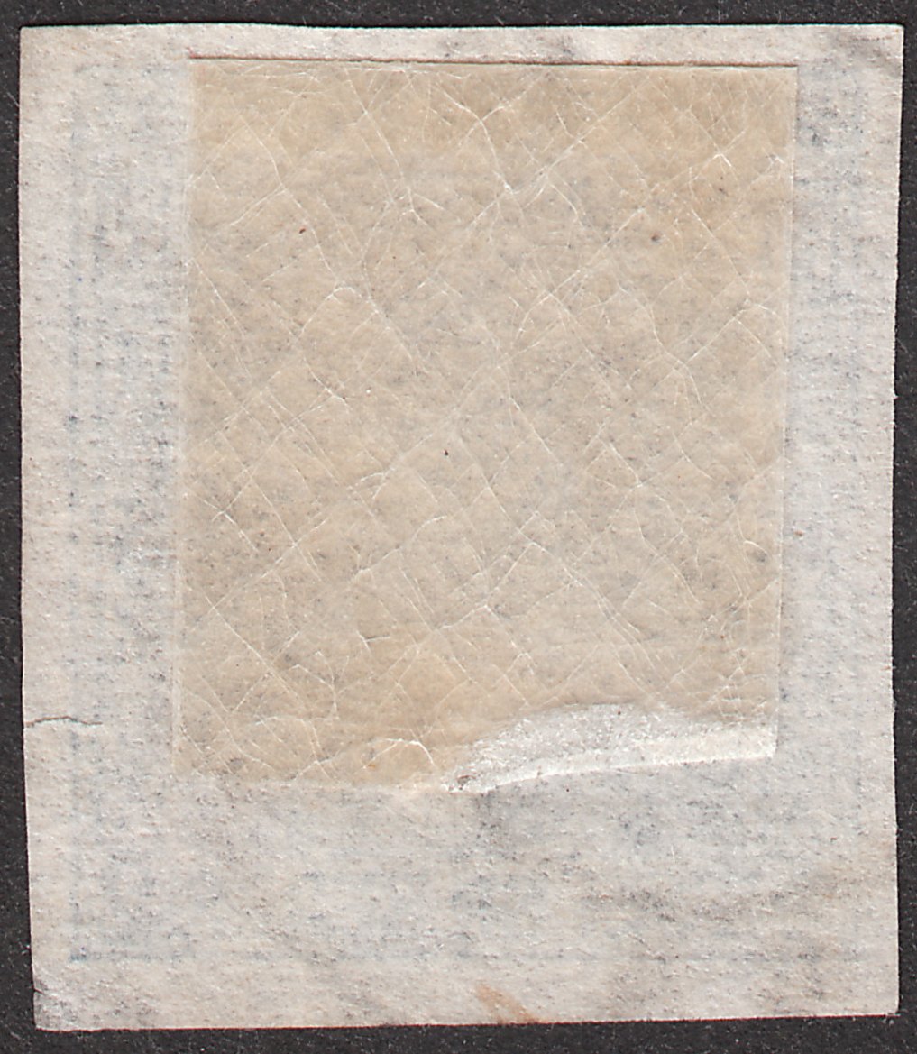 Die Marke hat an der rechten Seite einen reparierten waagerechten Riss, der auf dem Scan der Rückseite gut erkennbar ist.