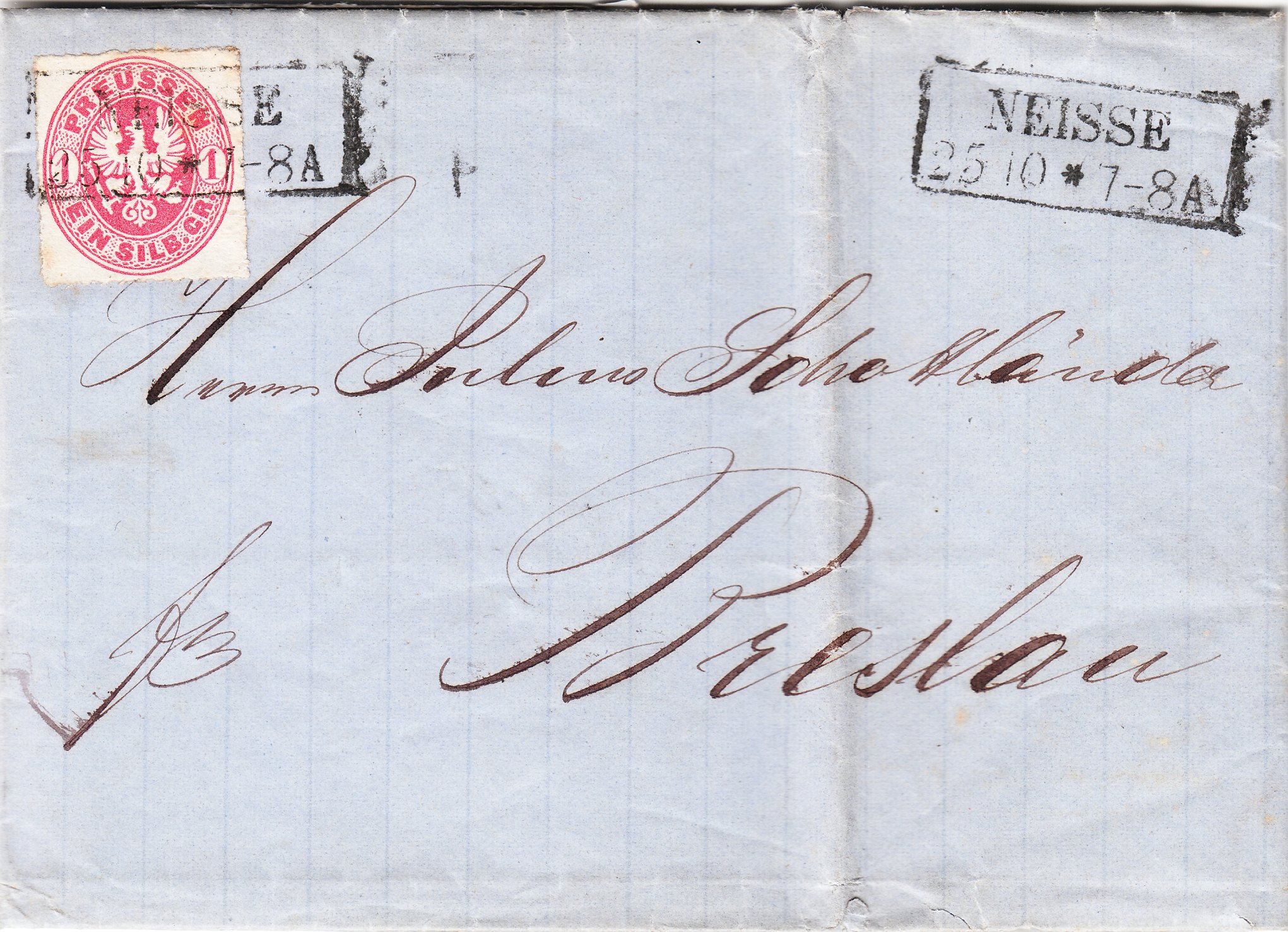 Diese MiNr. 16 war als Einzelfrankatur portorichtig bei einem Gewicht von unter 1 Loth und einer Entfernung von bis 10 Meilen auf einem Brief von Breslau nach Reichenbach in Schlesien am 05.04.1867: