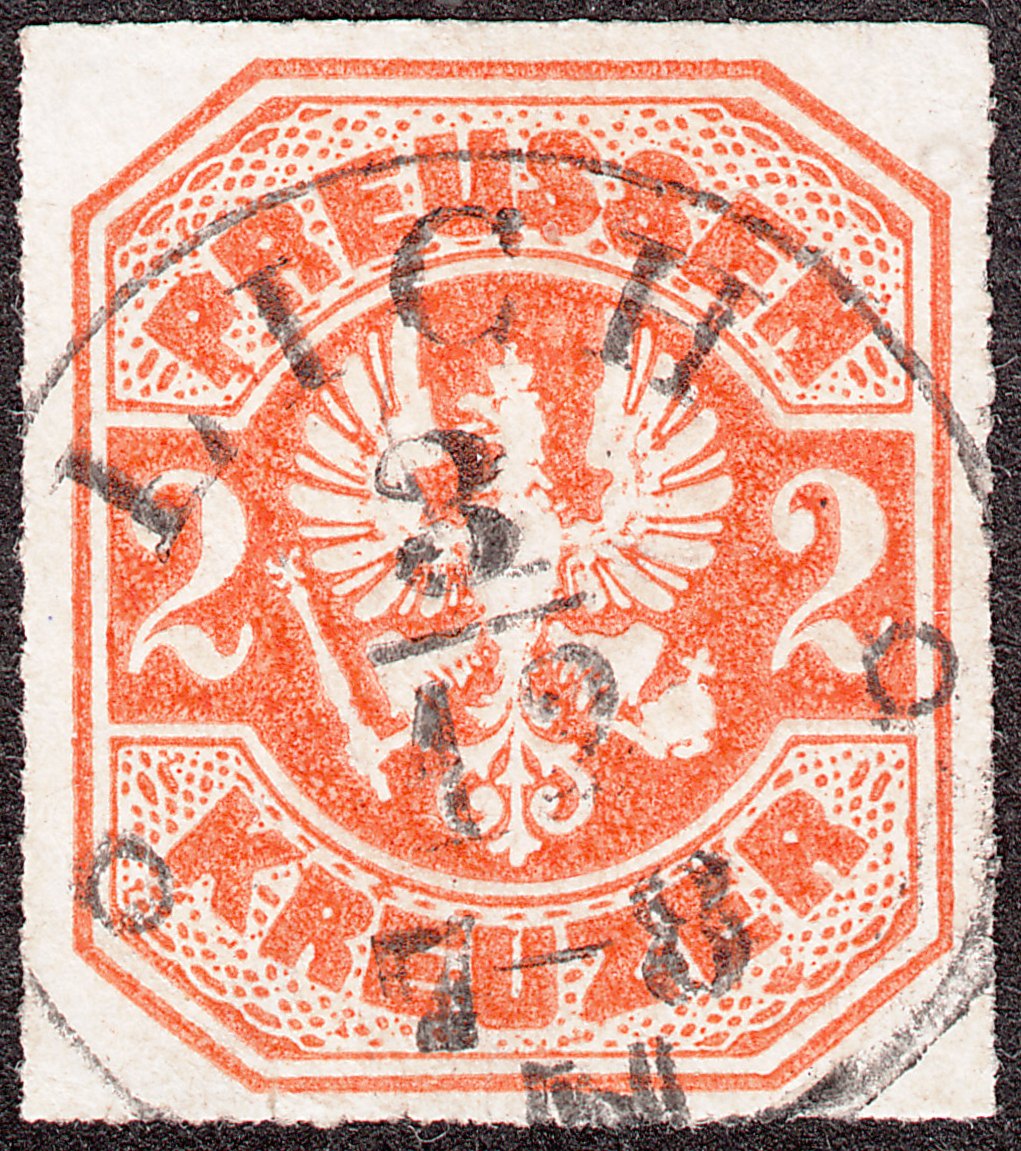 Diese MiNr. 23 wurde in "LICH" am 03.12.1867 mit einem nachverwendeten Stempel der Thurn und Taxisschen Postverwaltung mit Stundenangabe "7-8 N" entwertet: