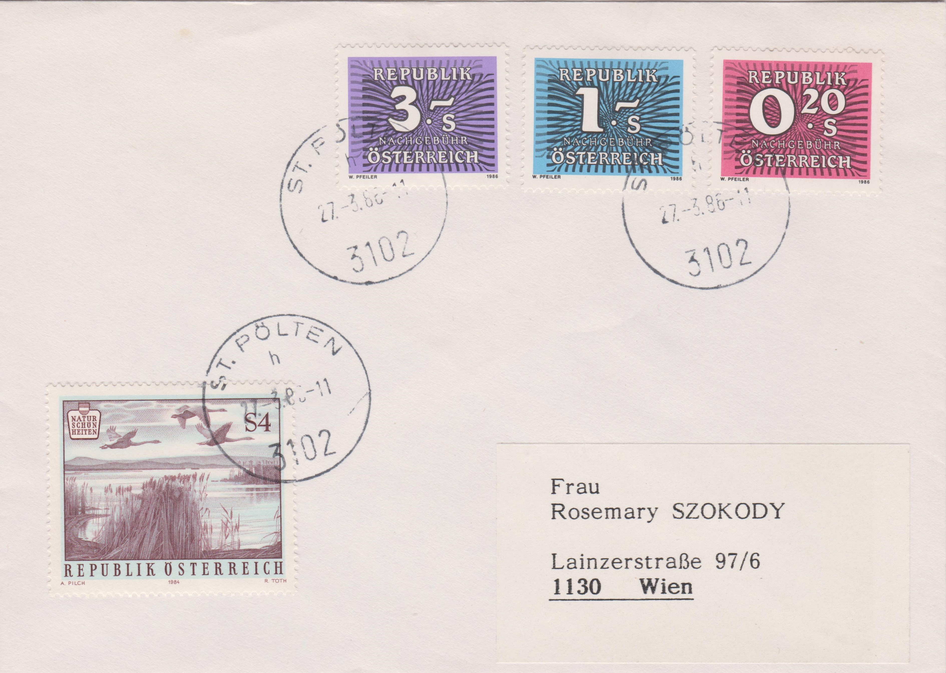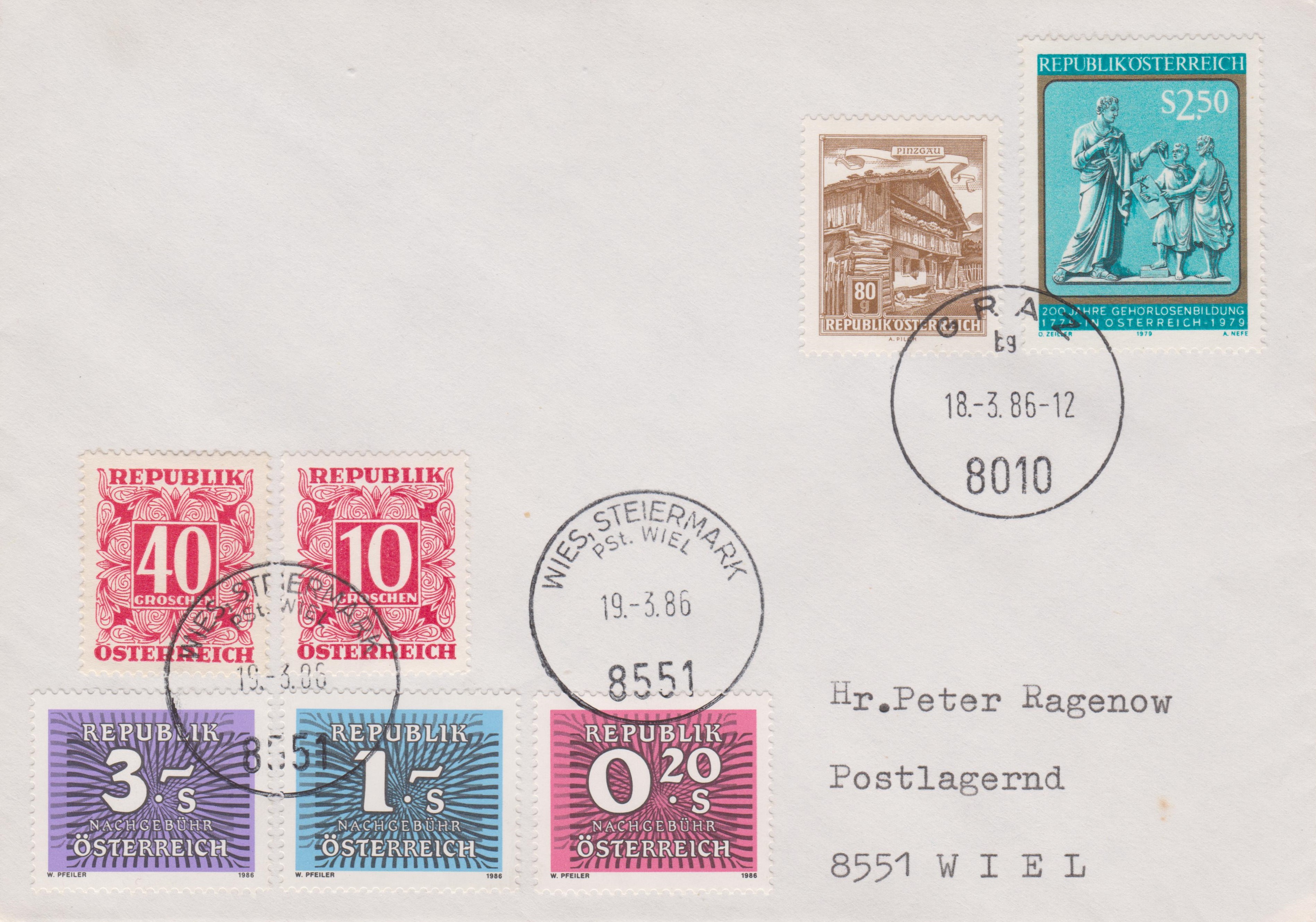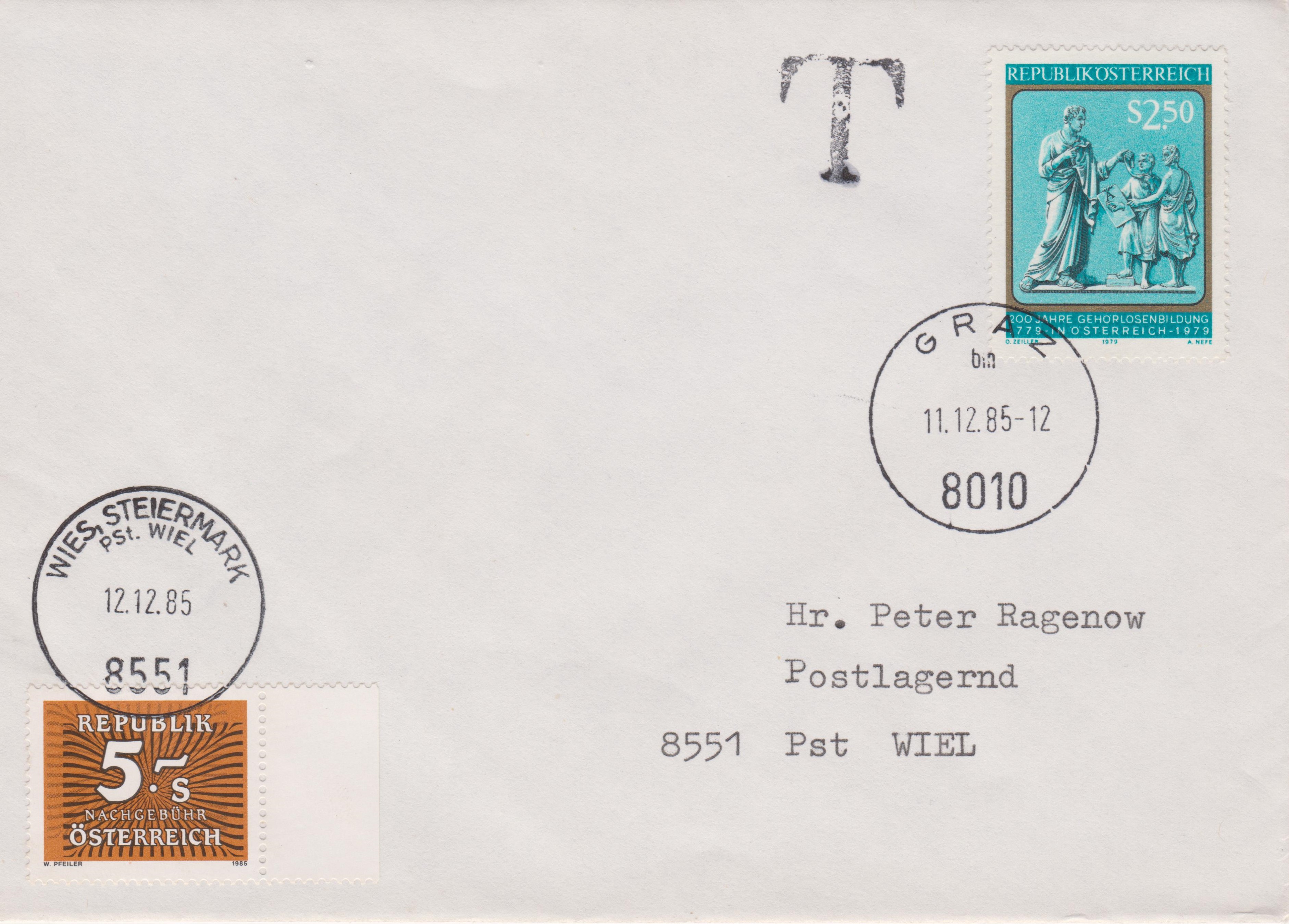 Für einen Brief nach Österreich galt zwar das Inlandsporto, dieses betrug jedoch für einen Brief bereits seit dem 01.07.1982 80 Pf. Daher wurde in Deutschland handschriftlich ein Vermerk "T 20/120" angebracht.