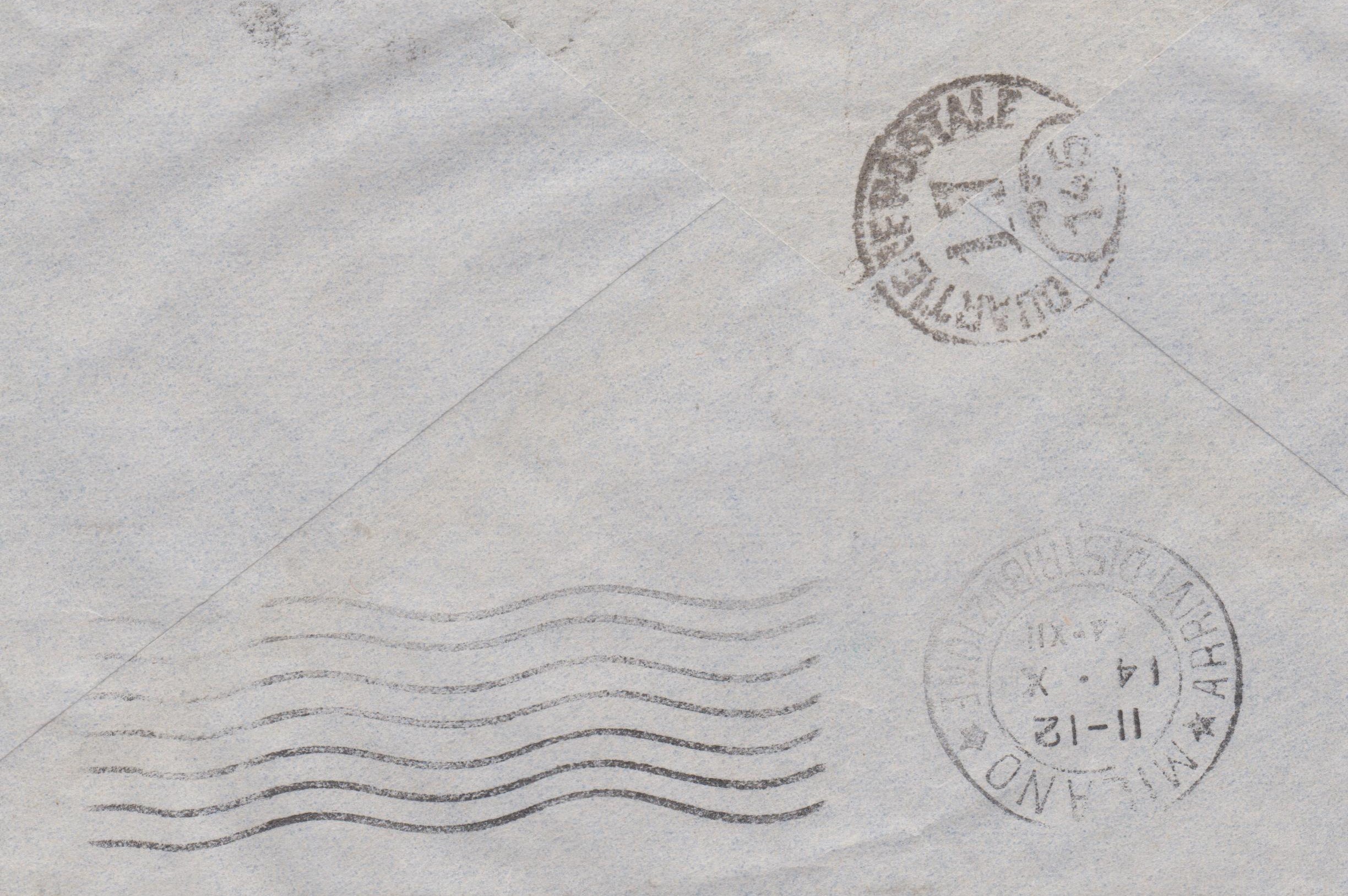 Rückseitig Zustellerstempel aus Rom: "QUARTIERE POSTALE 17 145":