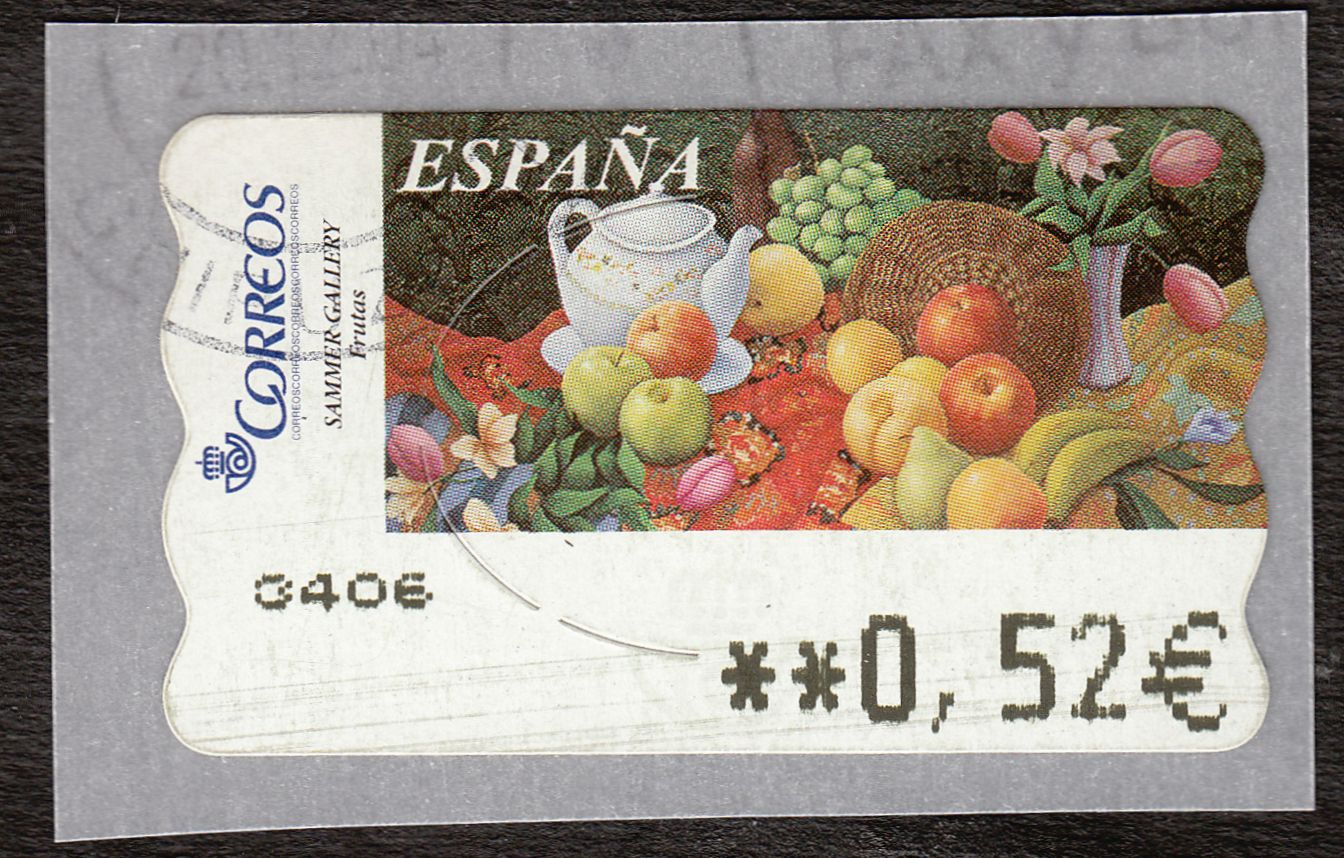 Diese Automatenmarke aus Spanien (MiNr. 15) mit dem Motiv "Miguel de Cervantes Saavedra" erschien im Oktober 1996 in einer Auflage von 250.000.000 Vordrucken: