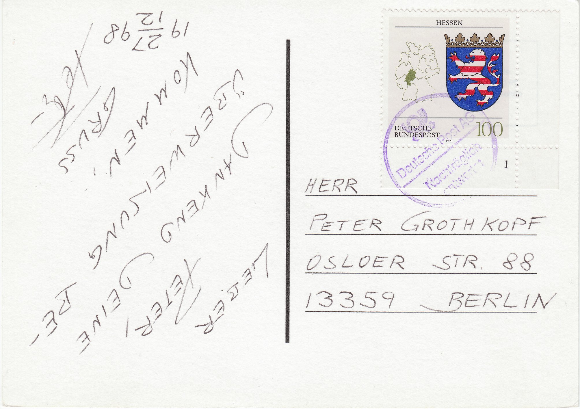 Diese am 27.12.1998 geschriebene Postkarte (100 Pf) wurde als Einzelfrankatur portorichtig mit einer MiNr. 1660 frankiert: