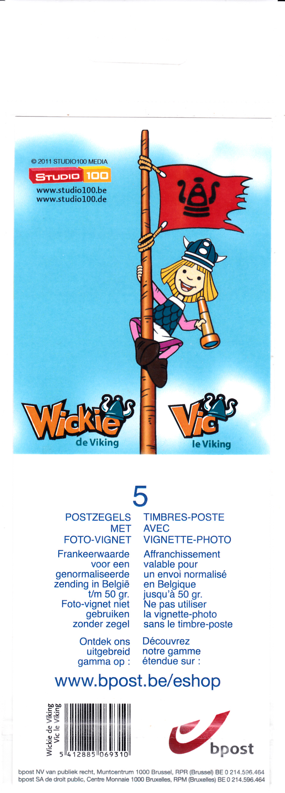 Es folgt heute ein Fünferstreifen mit fünf Marken MiNr 4130 (rechter Teil) und fünf Zierfelder zum Thema ""Wickie".