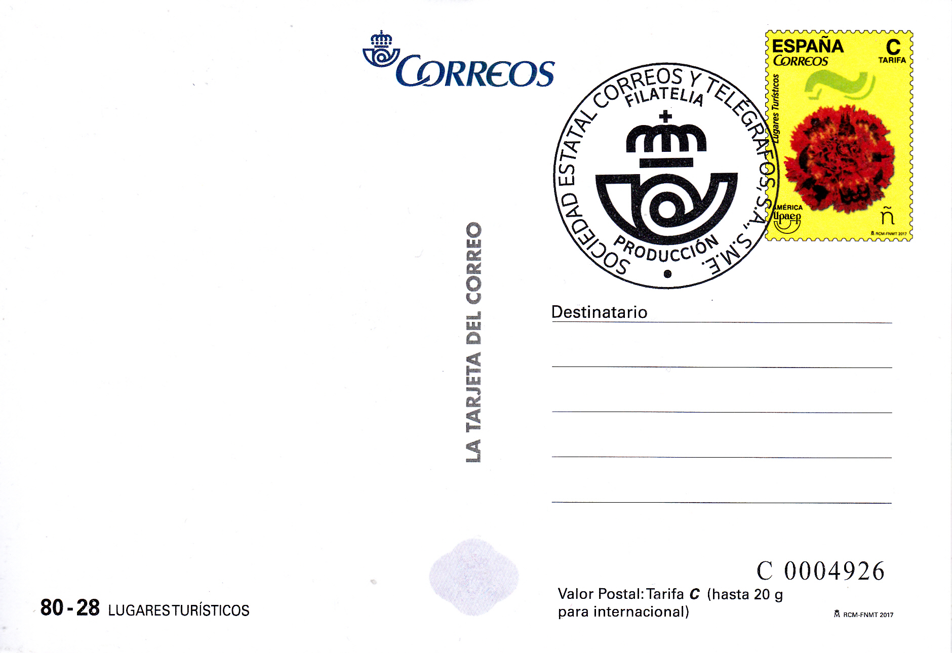 In Spanien ist eine Ganzsachen-Postkarte mit dem Wertstempel im Muster der Marke zum 400. Geburtstag von Bartolomé Esteban Murillo (MiNr 5136) mit der Abbildung "Madonna mit einer Serviette" nach einem Gemälde von Bartolomé Esteban Murillo erschienen.