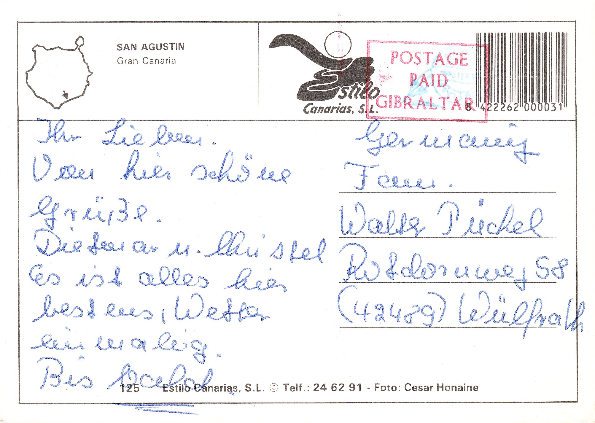Diese Postkarte zeigt einen Gebühr bezahlt Vermerk aus Gibraltar "POSTAGE PAID GIBRALTAR":