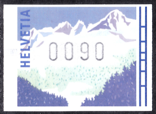 Die vierte Automatenmarke dieser Serie (MiNr 10) zeigt "Die Alpen im Winter".