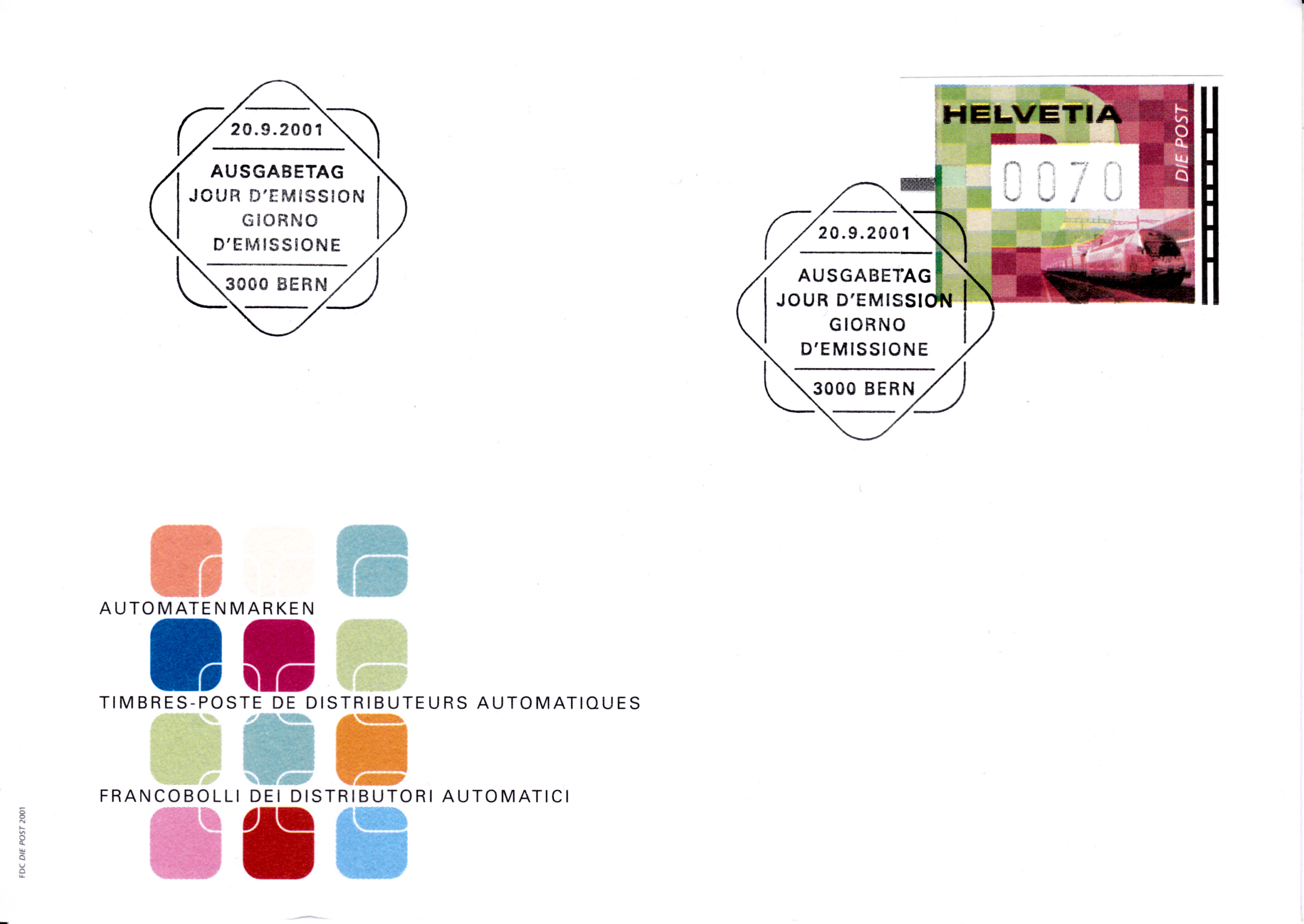 Es folgt ein FDC der Schweizer Post mit dieser Automatenmarke.