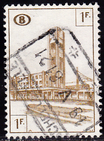 Diese Eisenbahnpaketmarke aus der Ausgabe von 1953/56 mit Abbildungen zur "Nord-Süd-Verbindung in Brüssel" in der Wertstufe zu 1 Franc mit der Abbildung "Bahnhof Brüssel Nord" ist als MiNr. 300 katalogisiert.