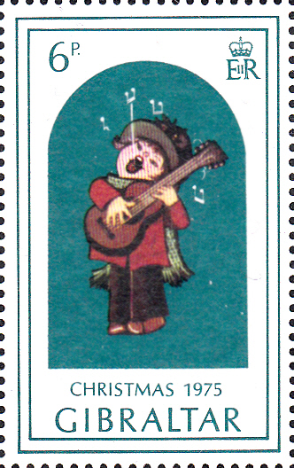 Die sechs Marken der Weihnachtsmarken 1975 wurden zusammen in einem Kleinbogen gedruckt. Am unteren Ende des Bogen befindet sich die Plattennummer, hier "1C".