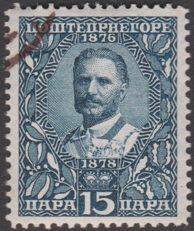 Montenegro MiNr. 76 erschien am 15.08.1910jul. (= 28.08.1910greg.) zur Krönung des Fürsten zum König und zeigt König Nikola I. im Jahre 1878: