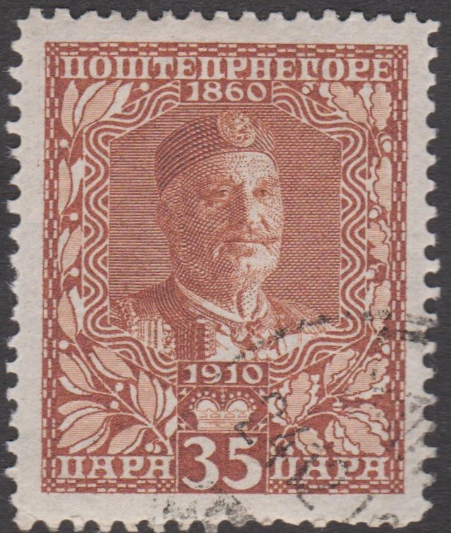 Montenegro MiNr. 78 erschien am 15.08.1910jul. (= 28.08.1910greg.) zur Krönung des Fürsten zum König und zeigt König Nikola I. im Jahre 1910: