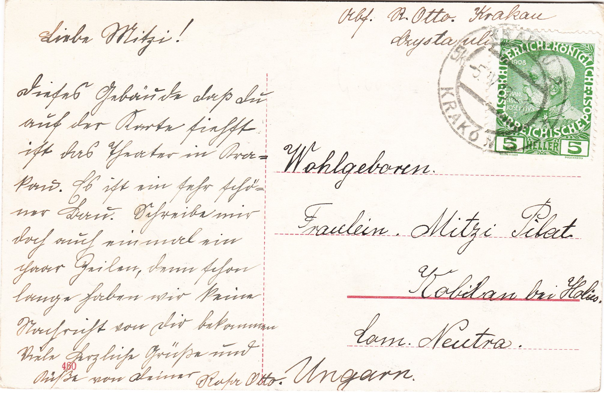 Hier eine Postkarte mit österreichischer Frankatur, aufgegeben am 05.04.1913 in KRAKAU: